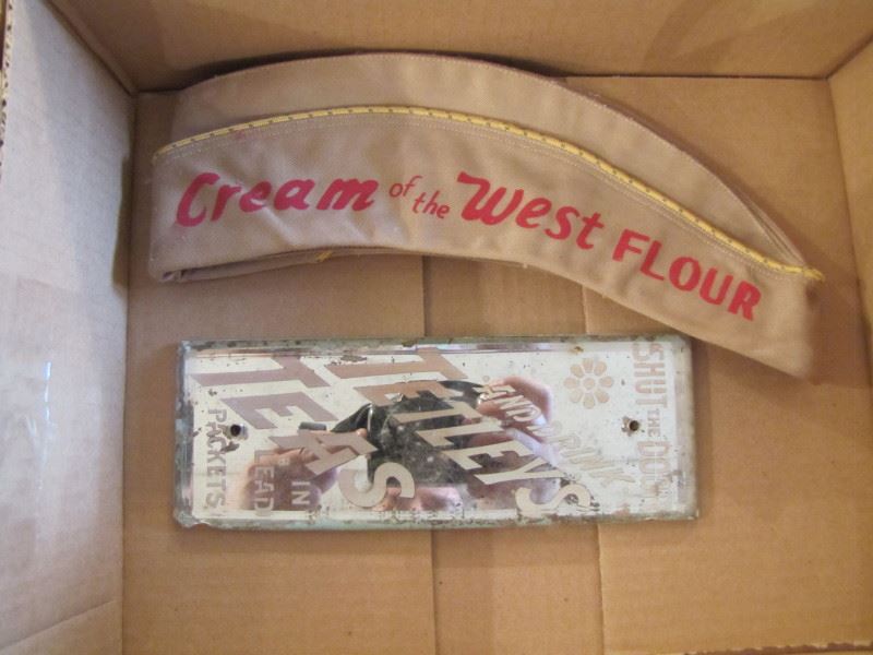 Lot of 2 Advertising Pieces "Cream of the West Flour" Hat and "Tetley's Tea" Door Push