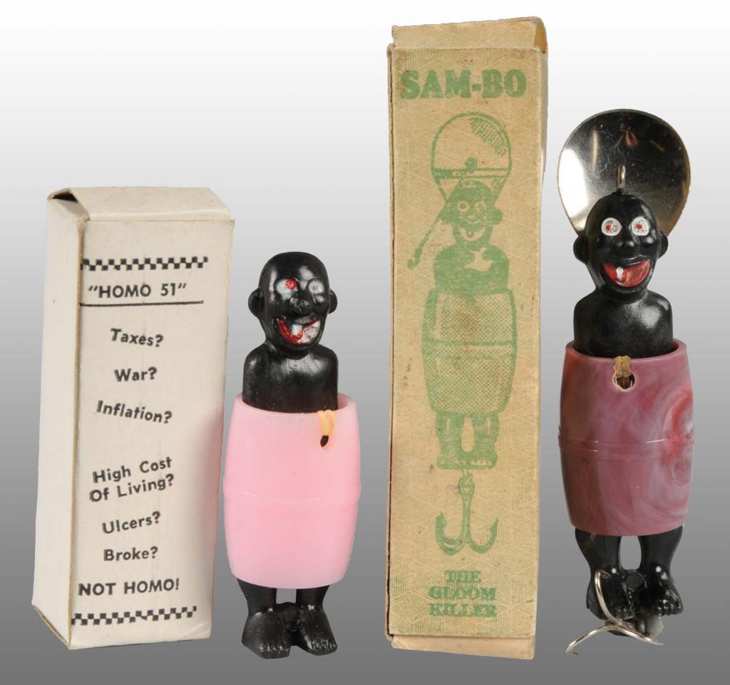 Description Made of plastic and metal. One is marked "Sam-Bo the Glum Killer". Includes original boxes. Condition (Excellent). Size Largest: 4" T.