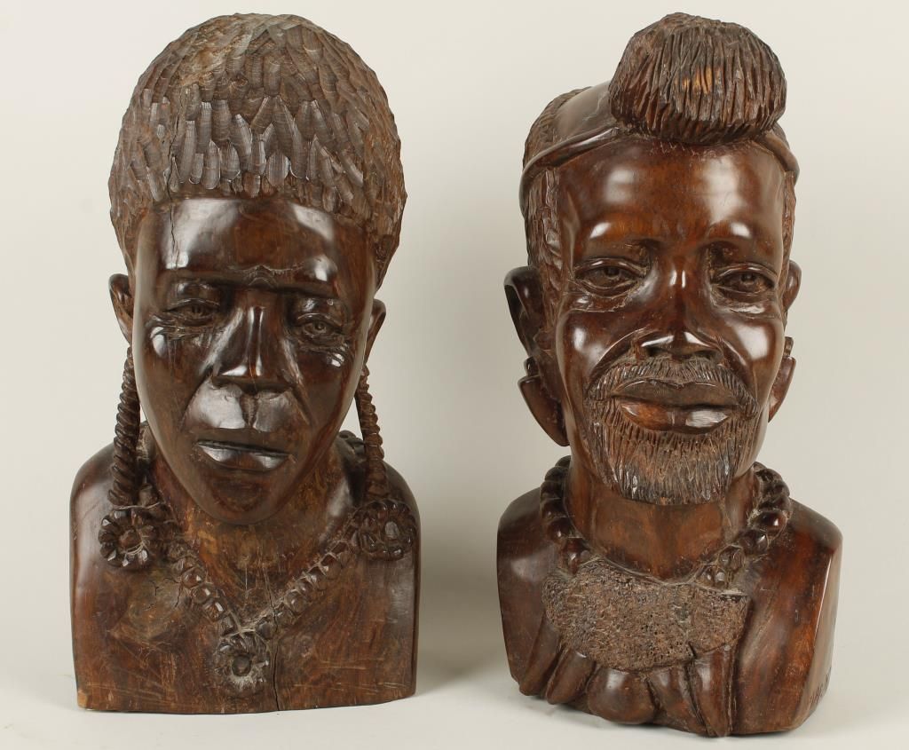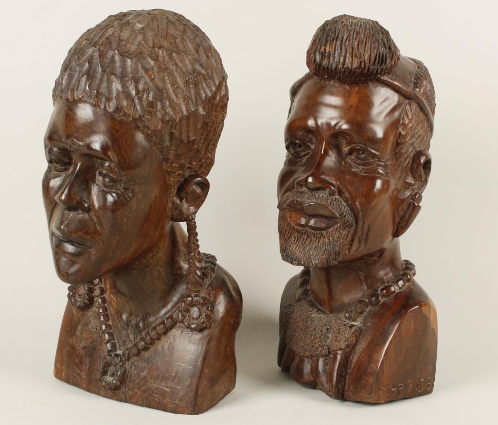 by Sande & Maponders, depicting a man and woman, finely carved, measures 14"x7". T"Tony DaCosta Collection" of noted hunter and owner of Safari Headquarters Ltd. from Carson City, NV.