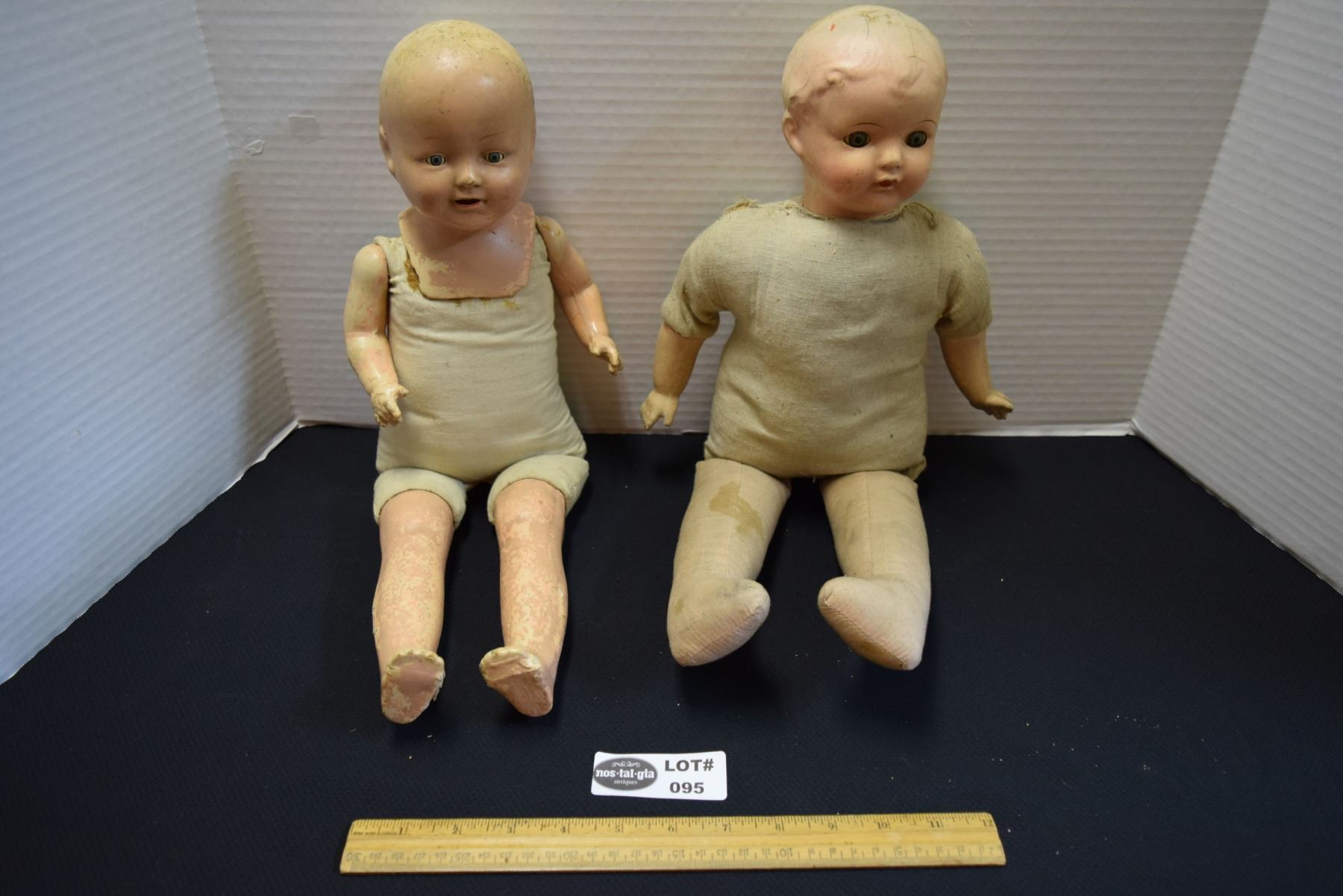 Lot of 2 Antique Composition Dolls with Sleep Eyes