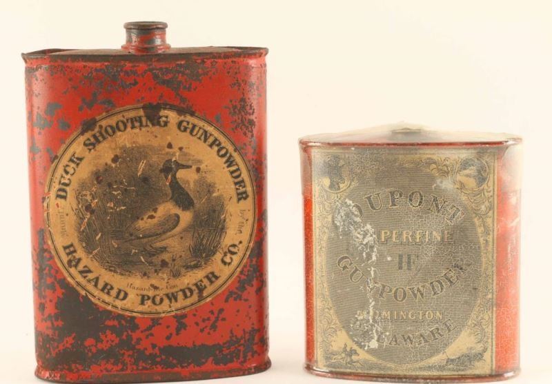 Hazard Powder gunpowder tin dated around the 1880's to the 1900's and a DuPont Superfine circa 1880.
