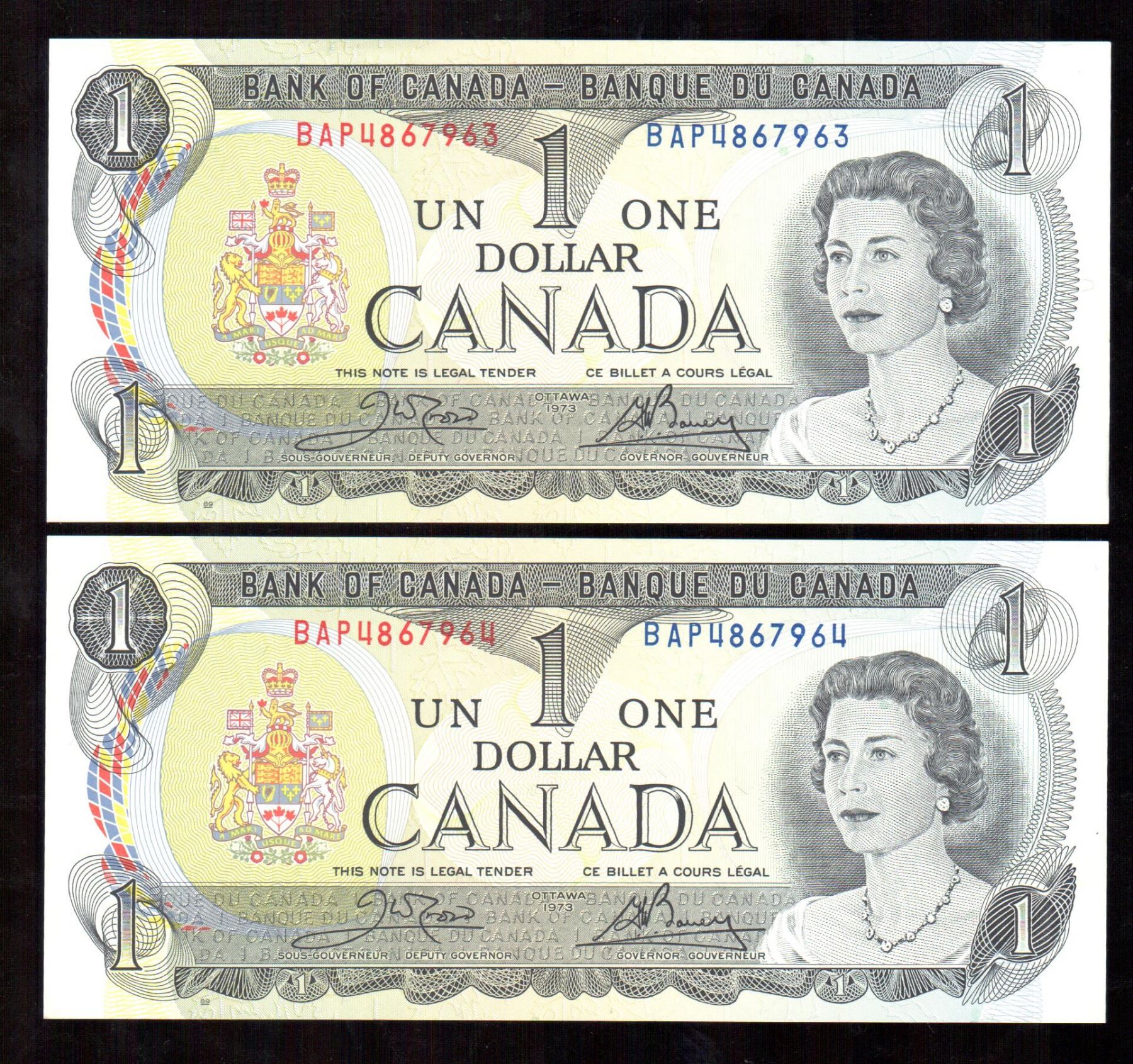 Lot 87; Dates include 1973 2 Consecutive serial numbers 63,64 Crow-Bouey Choice Unc