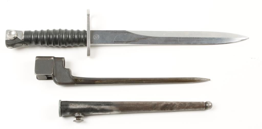 Includes a Lee-Enfield bayonet and a Swiss bayonet.