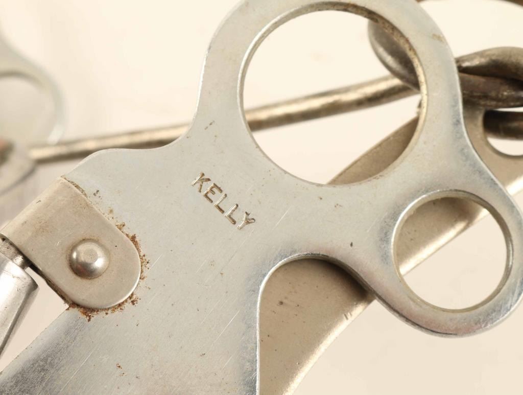(1) Kelly marked metal roller bit (1) Unmarked roller bit with leather head piece