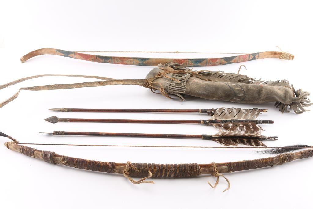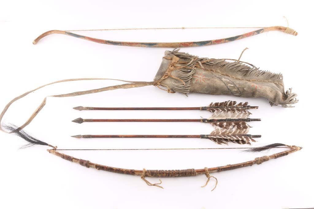 Bows measure 39" and 33" respectively. Quiver and arrows measure 24".