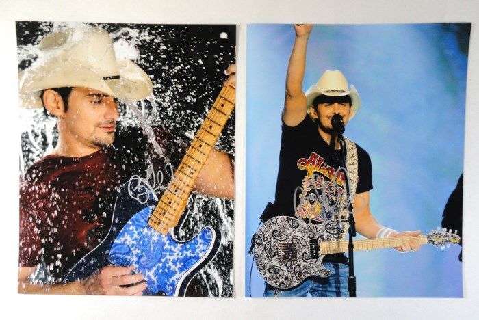 2 Different 8x10 Photo's Signed by Brad Paisley with Silver Sharpie. No COA's. EST $90.00 - $130.00