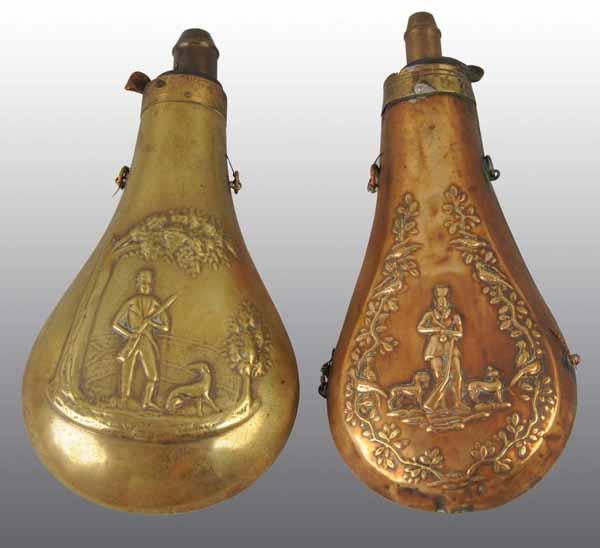 Description Embossed with hunter and dogs. Minor dents. Working. Condition (Excellent). Size Both: 8" L.