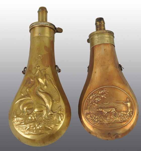 Description Both embossed, one with a hunter and dog, the other has a rabbit and bird. Both missing springs and have minor dents. Condition (Excellent). Size Largest: 8" L.