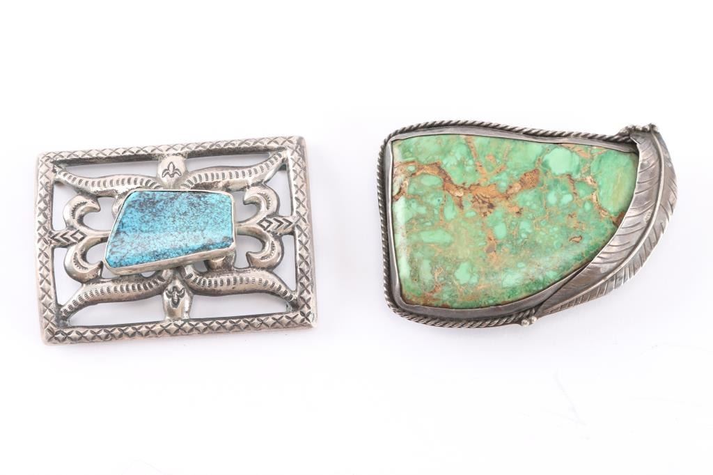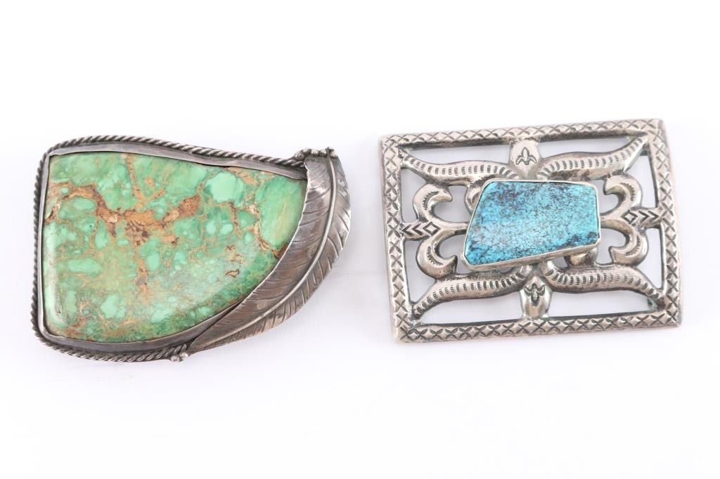 (1) Sandcast buckle wiht center spiderweb turquoise stone