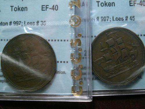 Lot of 2 CCCS graded tokens; Lees# 35, lees# 45. Both EF40.