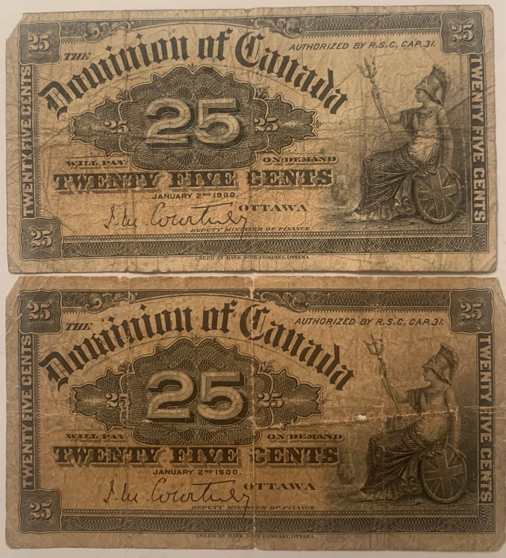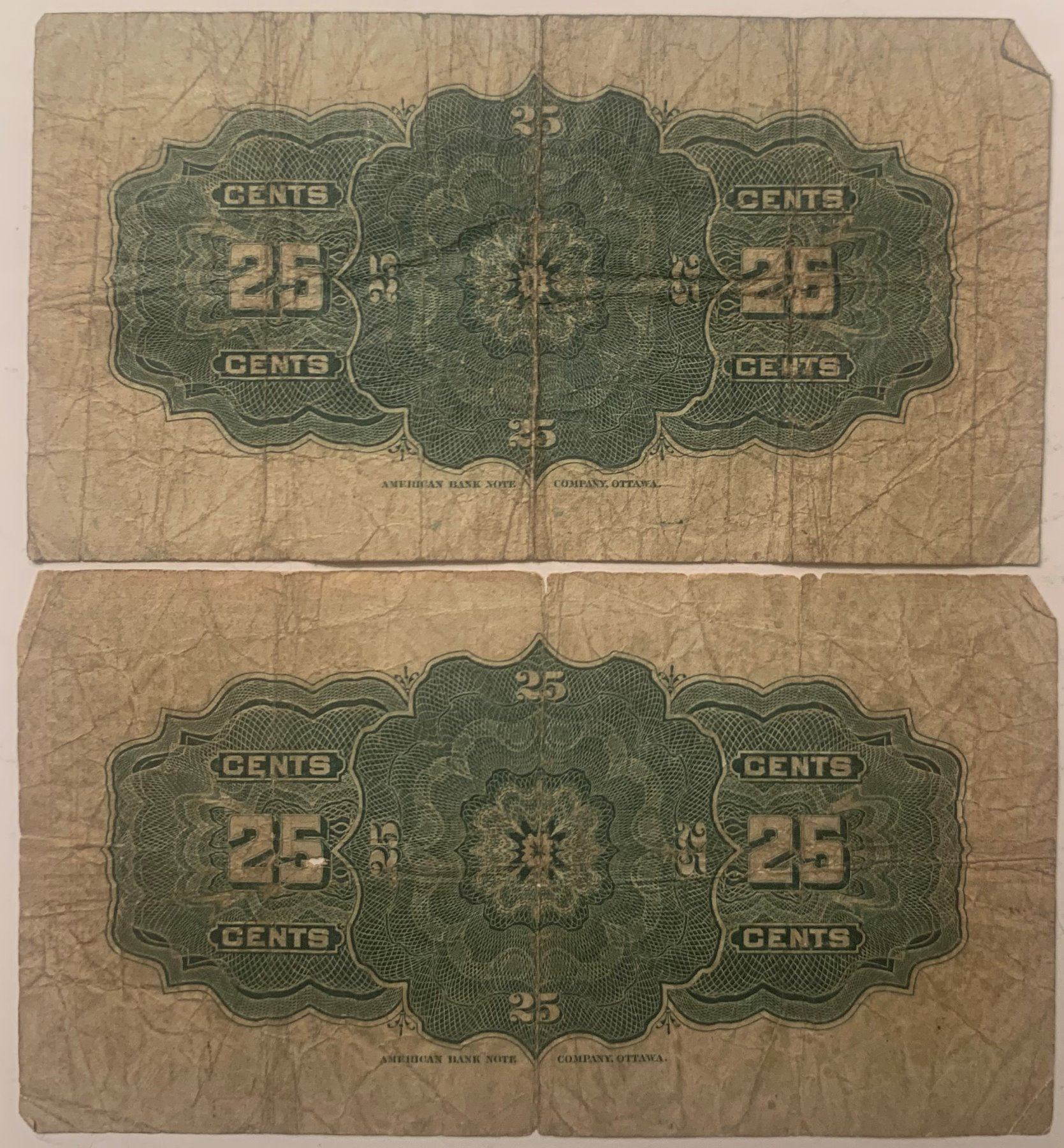 Lot of 2 Canada 25 cent 1900 Dominion of Canada 25c Shinplaster