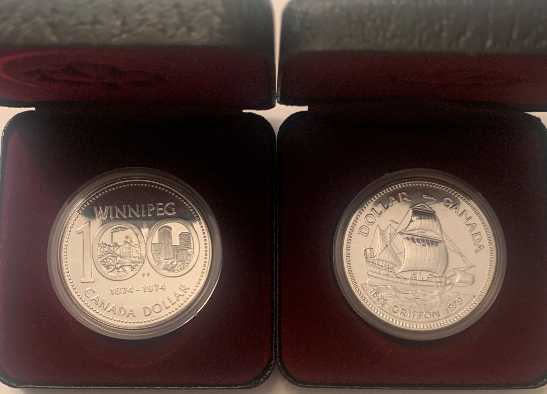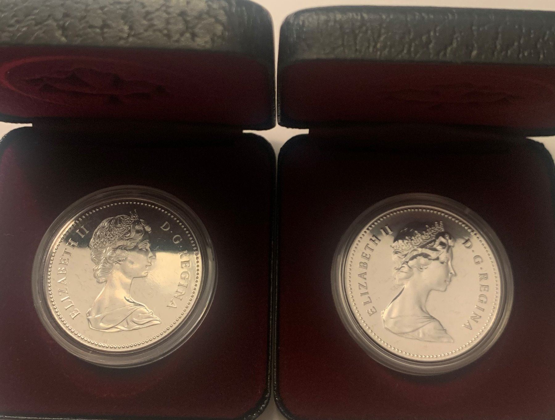 Lot of 2 Canada Cased Silver Dollar $1 Uncirculated 1974 and 1979