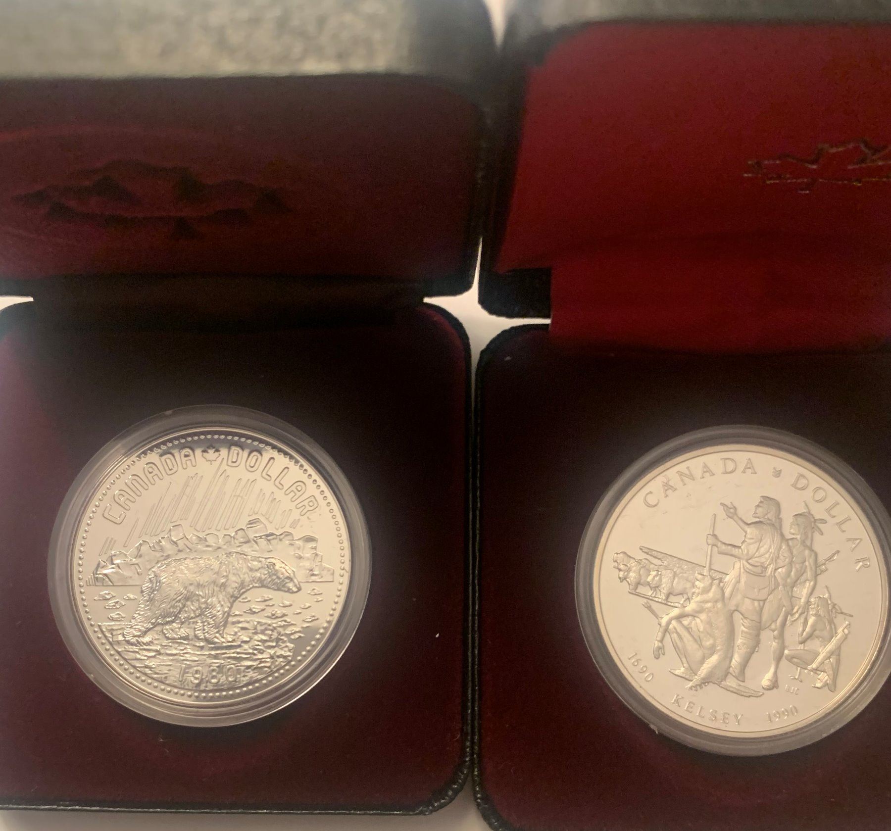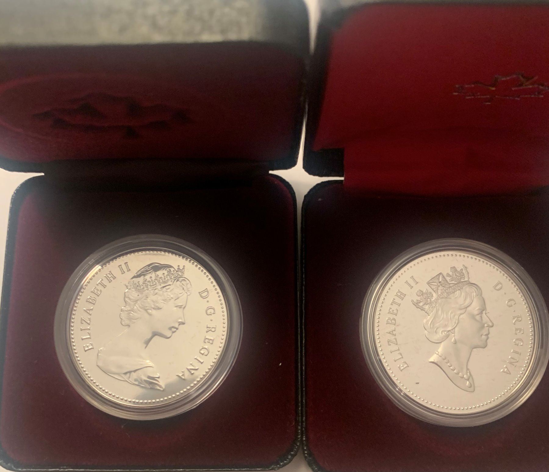 Lot of 2 Canada Cased Silver Dollar $1 Uncirculated 1980 and 1990