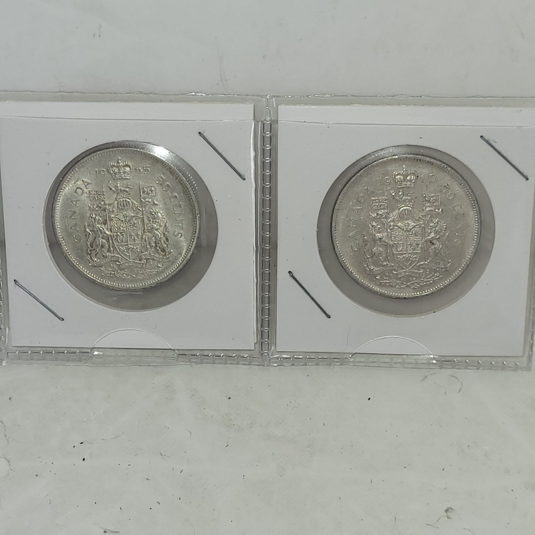 Lot of 2 Canada Silver 50 Cent Pieces (1965 x2)