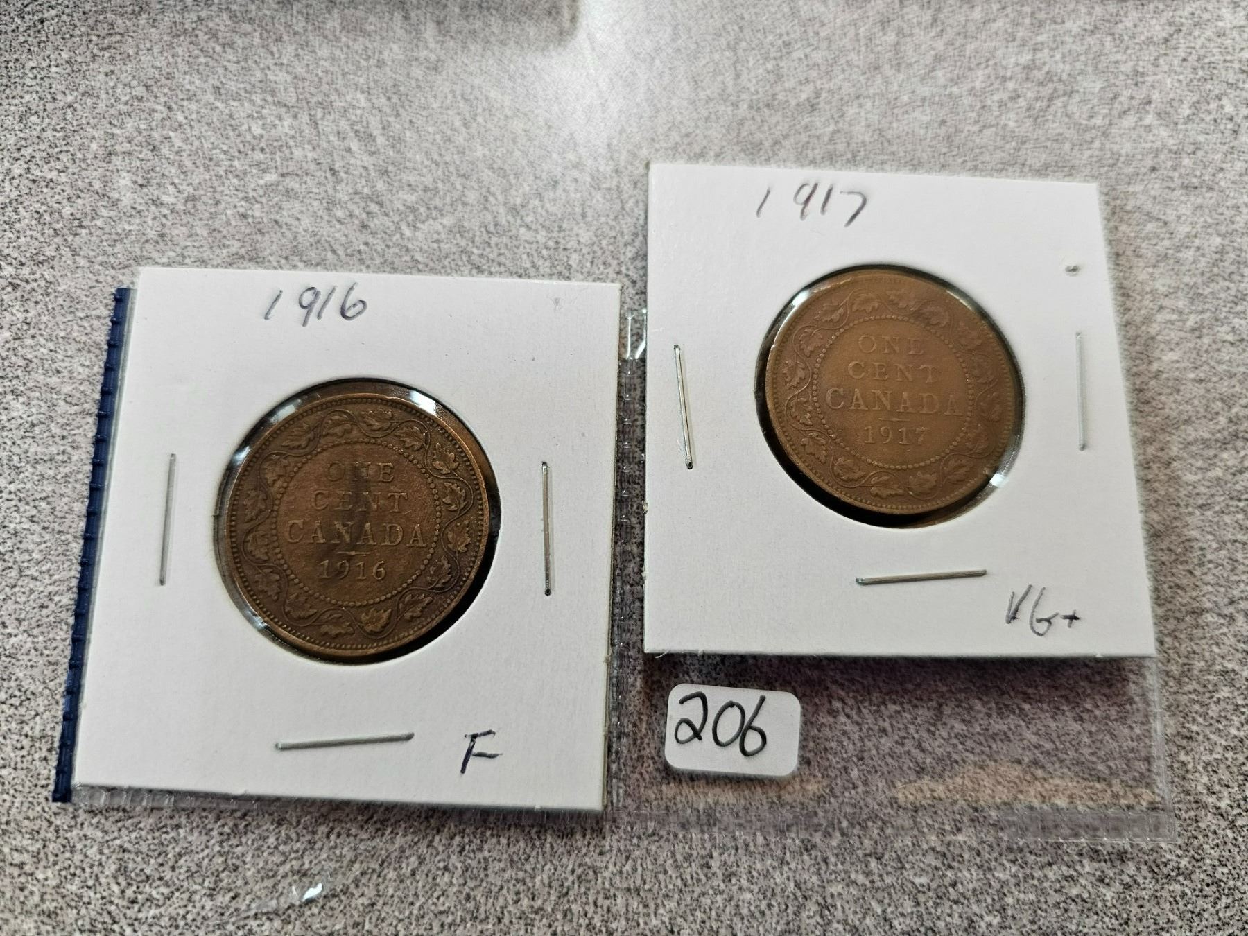 Lot of 2 Canada large pennies 1¢ 1916 & 1917