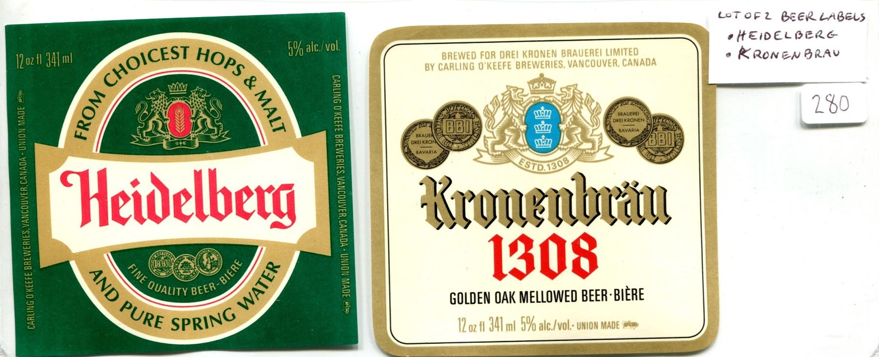 Lot of 2 Canadian Beer Labels. Heidelberg & Kronenbrau. New.
