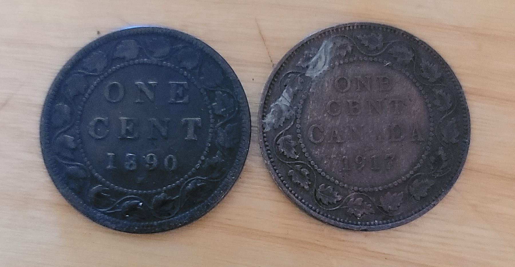 One 1890 one cent coin and 1917 one cent coin.