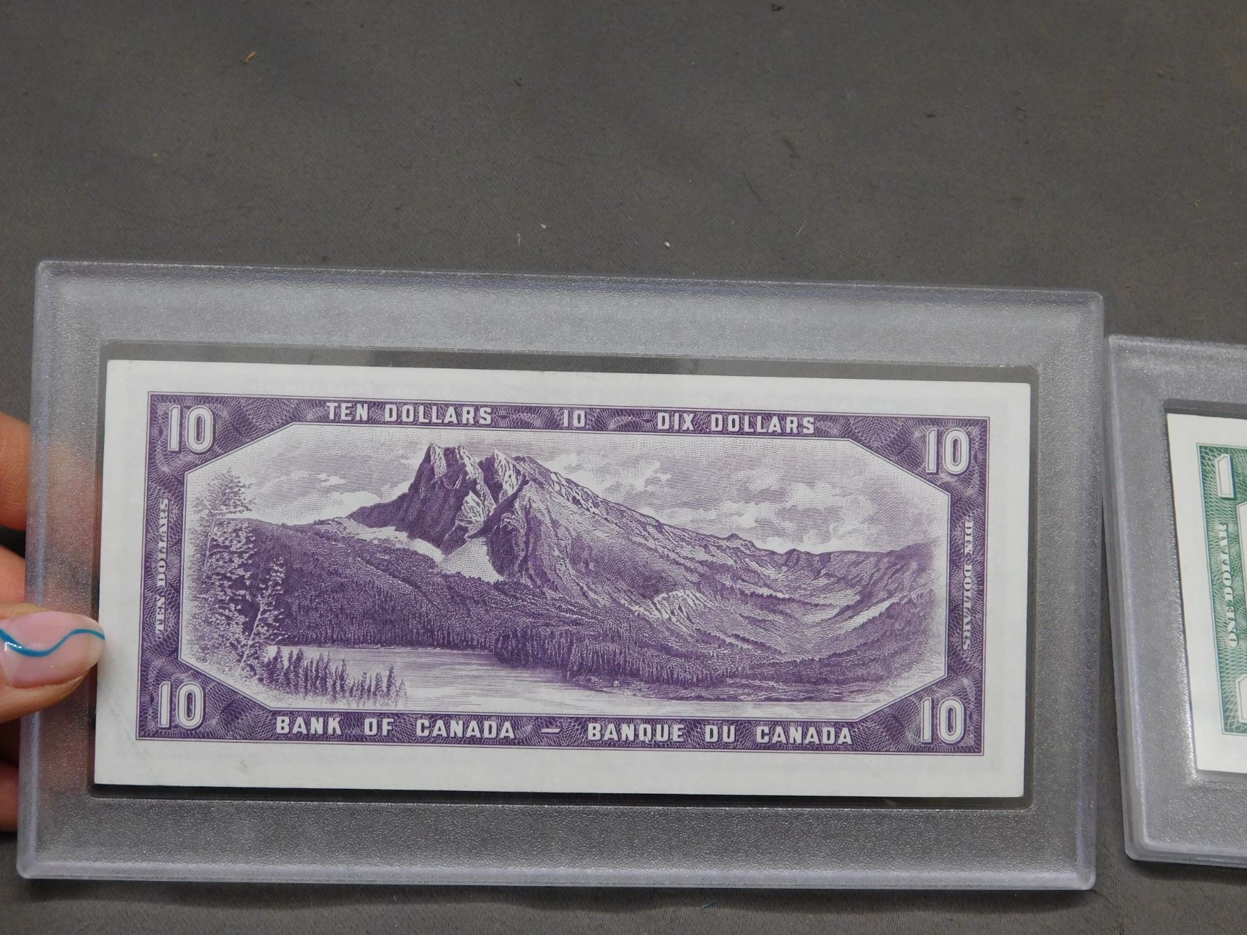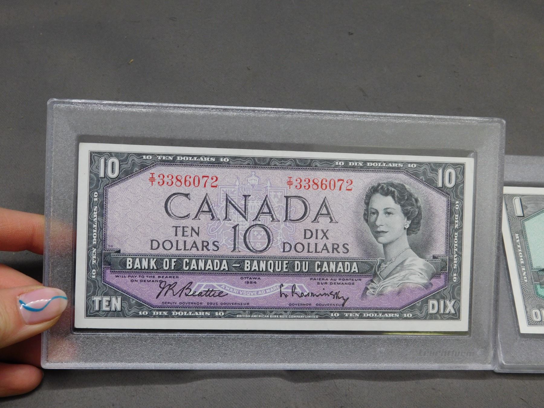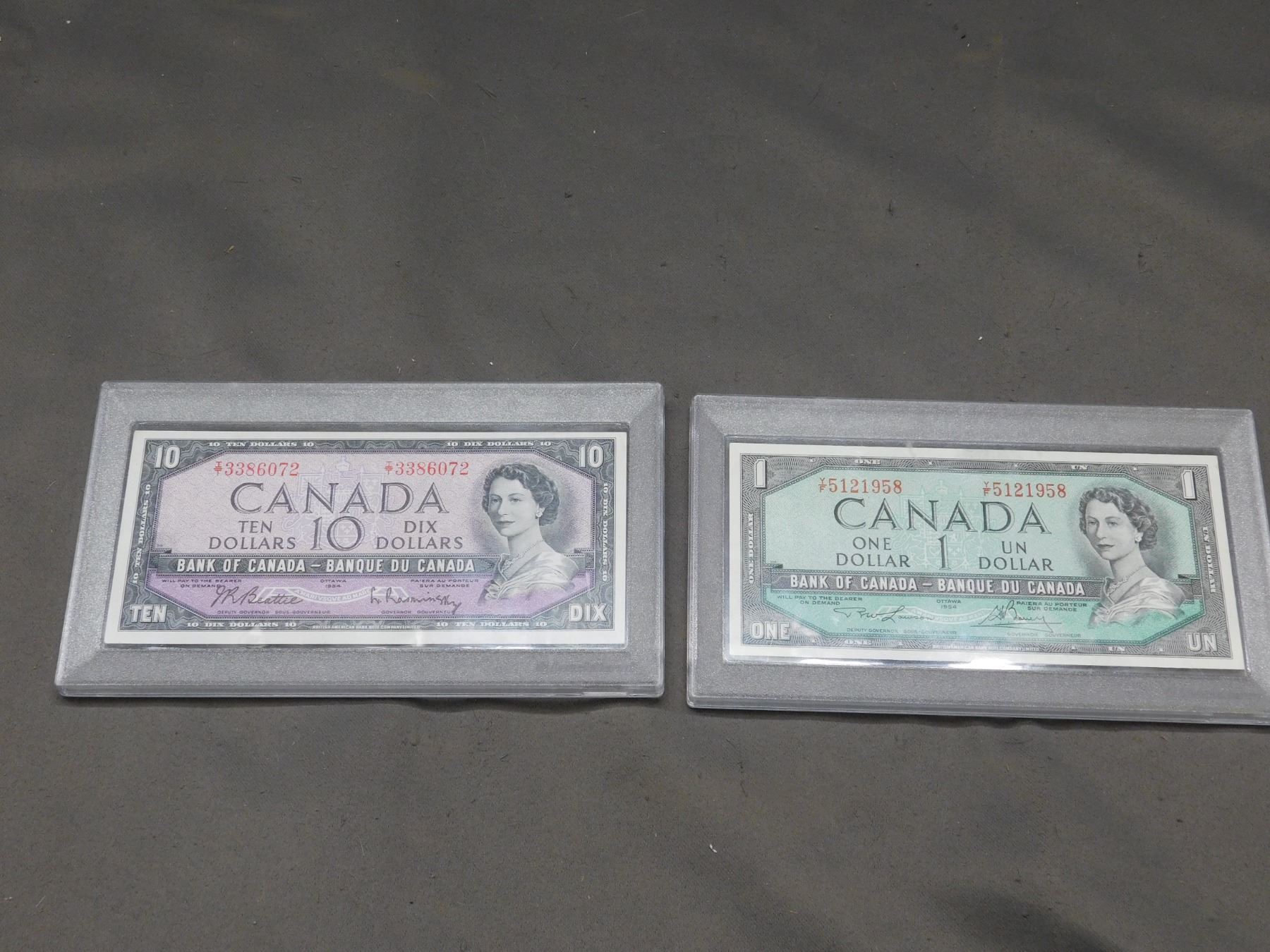 Lot of 2 Canadian Money Paper Dollar $1 and Ten Dollar $10 Bills Uncirculated
