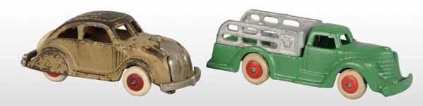 Description Includes one stake truck with rubber tires and one Chrysler Air Flow with replaced tires. Condition (Very Good - Near Mint Plus).