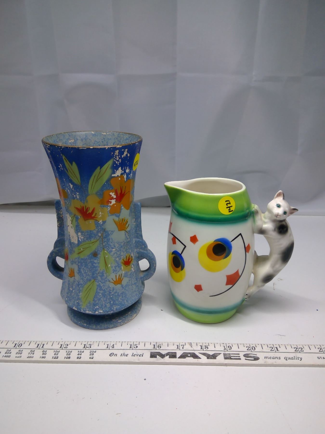 Lot of 2 Ceramic Items - Vase and Cat Pitcher