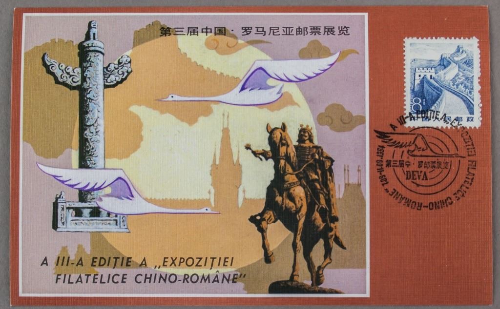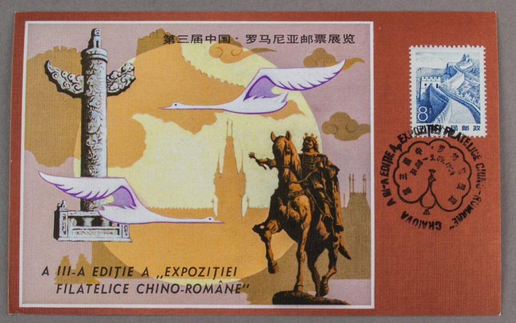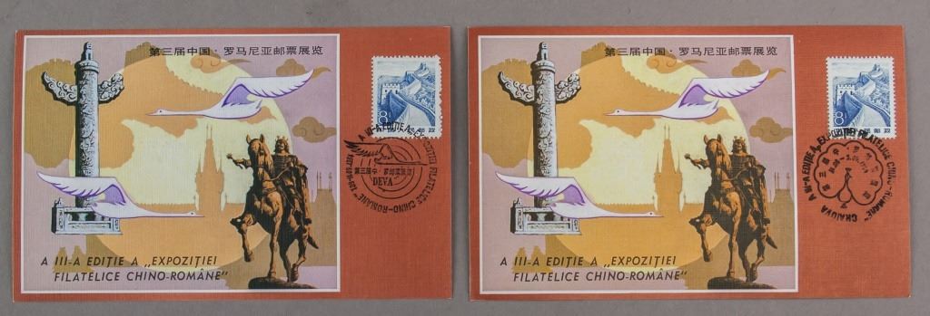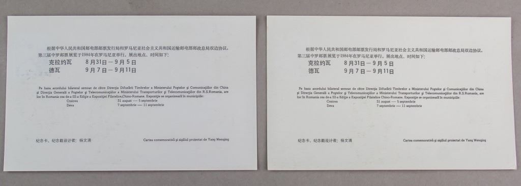 Lot of two postcards. Celebrating the third China-Romanian stamp exhibit. 10.5 x 17 cm, 9 grams.