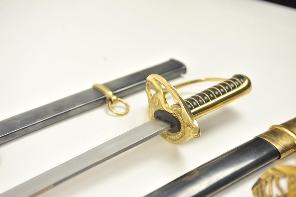Lot of 2 Civil War reproduction sabers with scabbard. 1 U.S. with fancy eagle guard and 1 C.S.A. Both in excellent condition. Est.: $175-$350