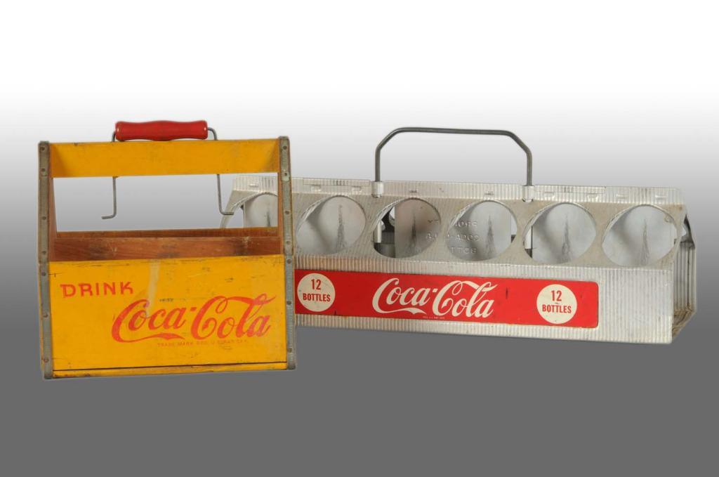 Includes one 1941 wooden carrier and one 1950s aluminum carrier. Medium overall wear and soiling. Condition (7.5, Very Good). Size Largest: 16" L.