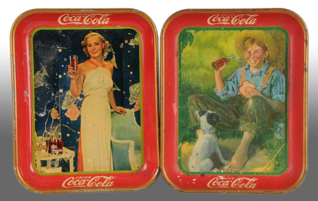 Description 1931 and 1935. Lots of wear, repaint, and restoration to the 1931 tray with some strong dents, scratches, and wear on the 1935 tray. Condition (5.0 - 6.0, Good). Size 13" x 10 - 1/2".