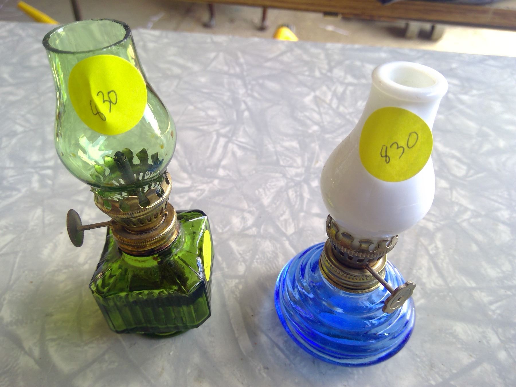 Lot of 2 Coloured Glass Kerosene Mini Lamps