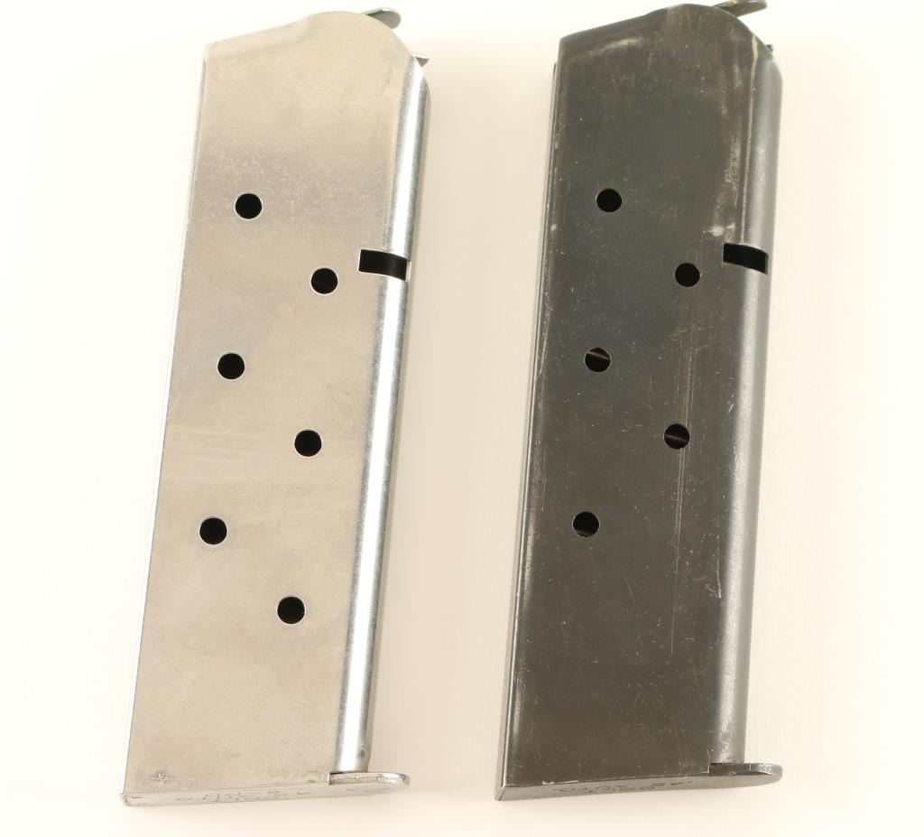 For the .45 Auto 1911 8 round type. One is Nickel and one is blued.