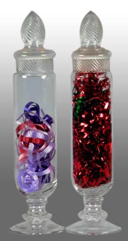 Both are ground. Jars have no chips, cracks, scratches or cloudiness. General Store Condition (Excellent). Size Each: 10" T.