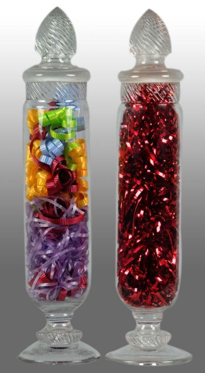 Both are ground. Jars have no chips, cracks, scratches or cloudiness. General Store Condition (Excellent - Near Mint). Size Each: 13" T.