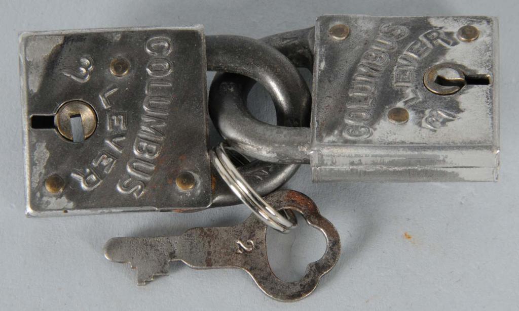 Description Includes two locks and one key. A few sets were found in the Columbus Factory after it closed. Condition (Excellent).