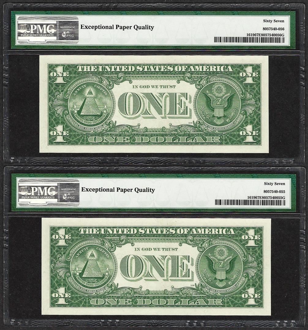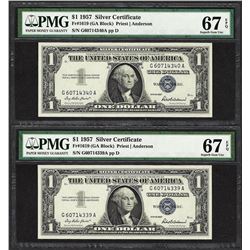 Lot of (2) Consec. 1957 $1 Silver Certificate Notes PMG Superb Gem Unc 67PPQ