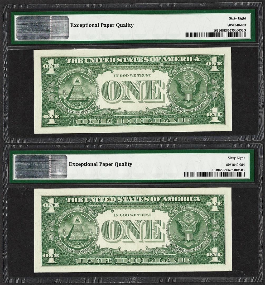 Lot of (2) Consec. 1957 $1 Silver Certificate Notes PMG Superb Gem Unc 68PPQ