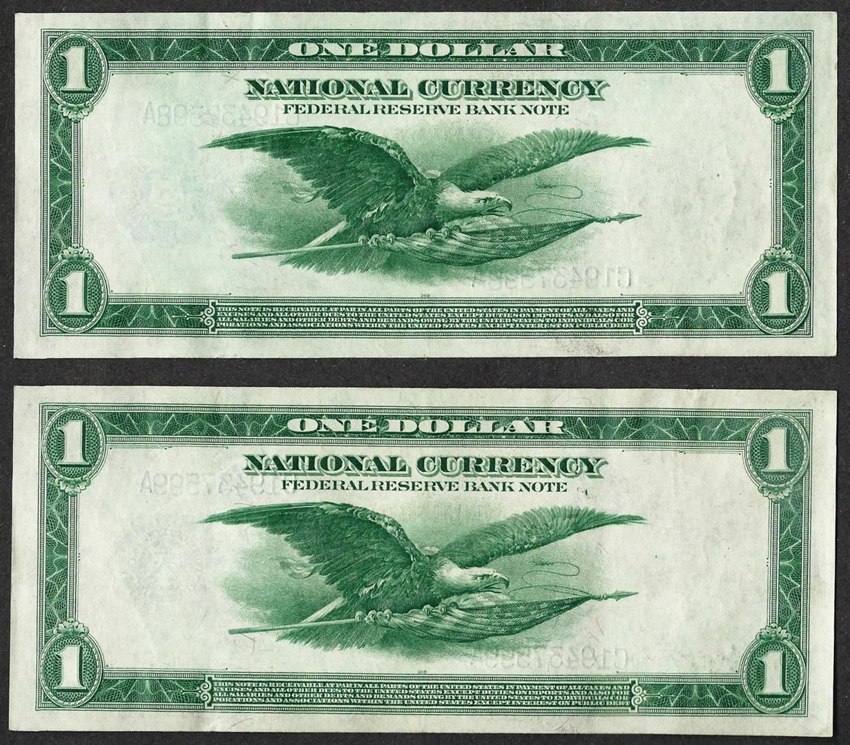 Lot of (2) Consecutive 1918 $1 Federal Reserve Bank Notes Philadelphia