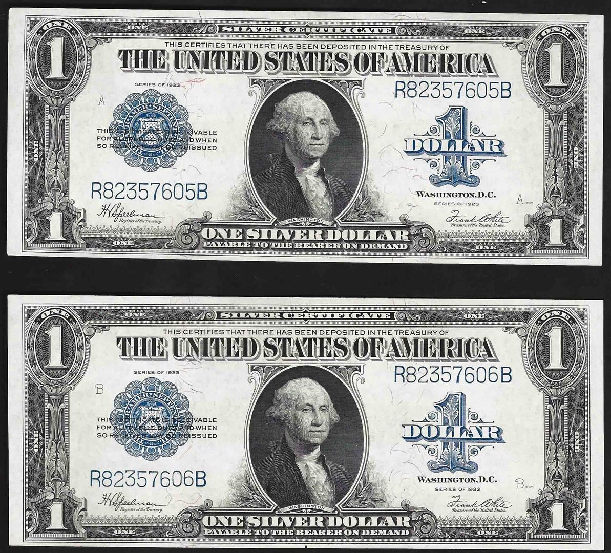 One Lot of (2) Consecutive 1923 $1 Silver Certificate Notes.