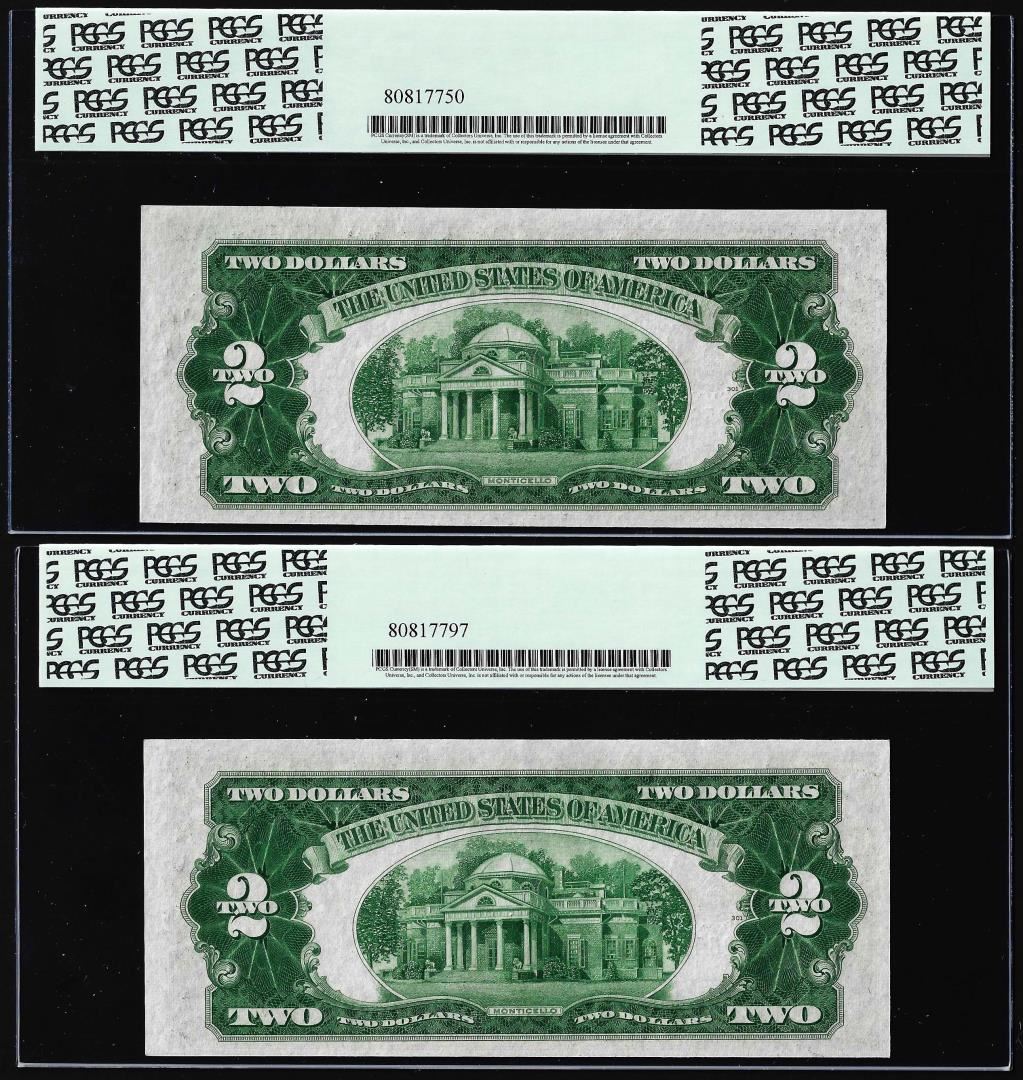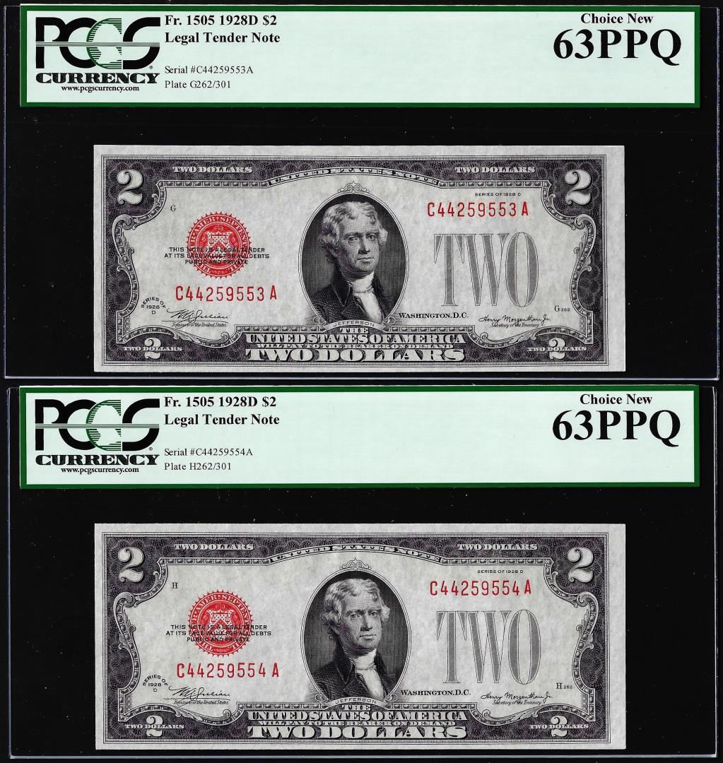 Lot of (2) Consecutive 1928D $2 Legal Tender Notes Fr.1505 PCGS Choice New 63PPQ
