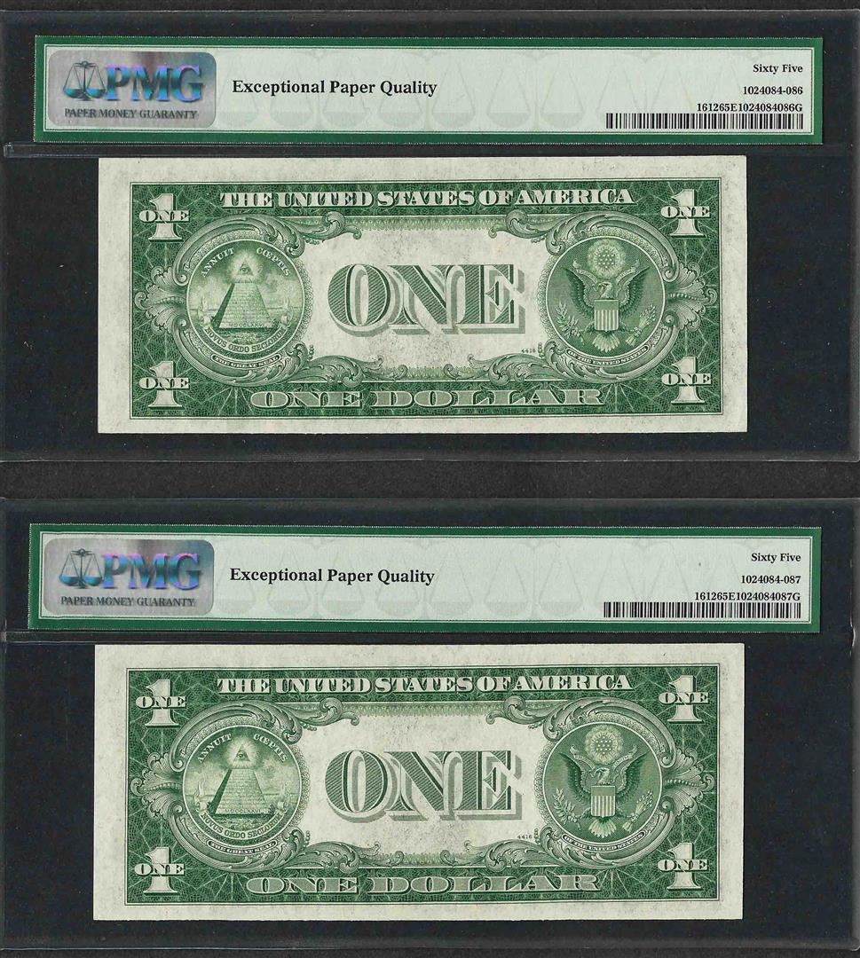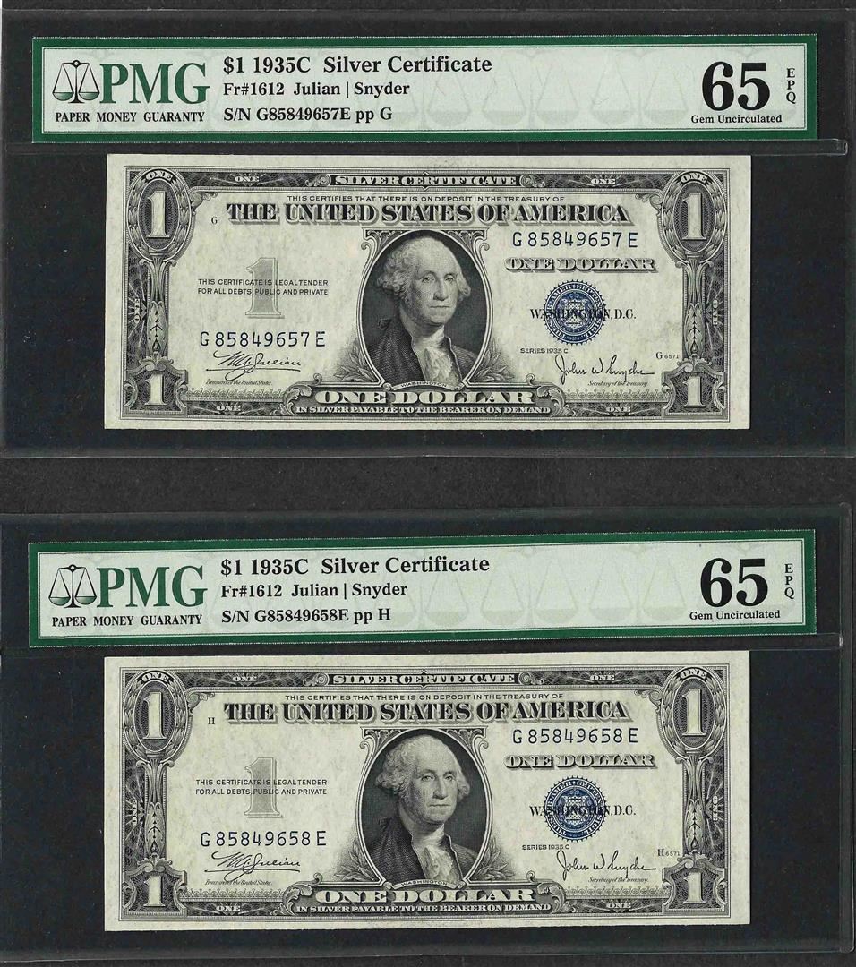 Lot of (2) Consecutive 1935C $1 Silver Certificate Notes PMG Gem Uncirculated 65