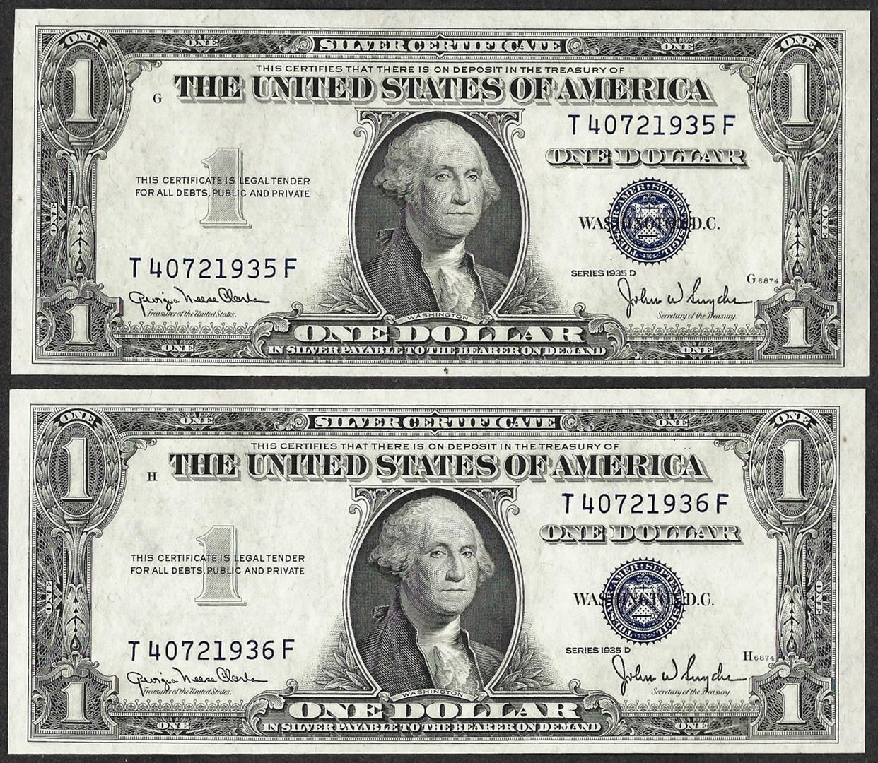 One Lot of (2) Consecutive 1935D $1 Silver Certificate Notes.