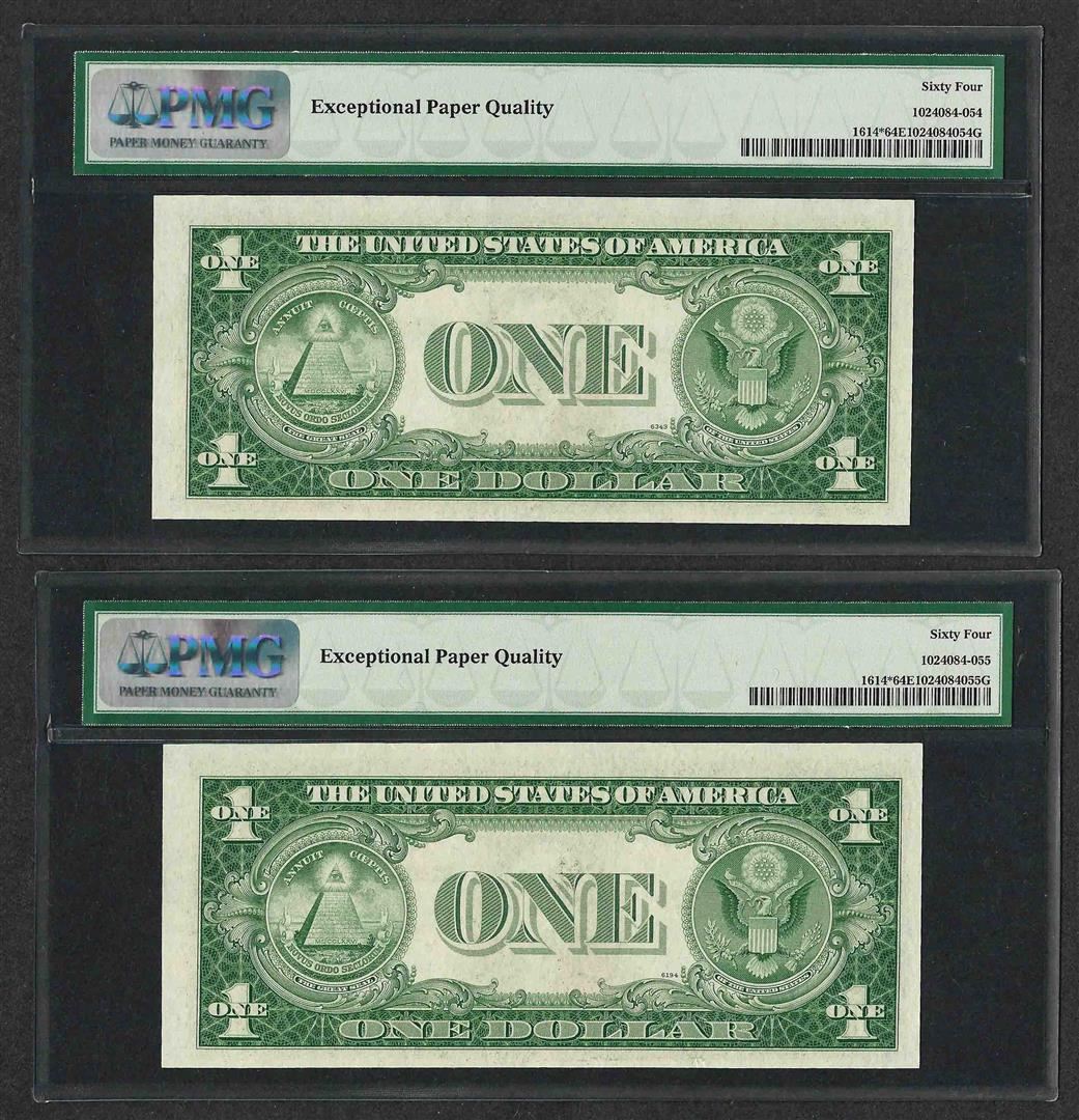 Lot of (2) Consecutive 1935E $1 Silver Certificate STAR Notes PMG Choice Unc. 64