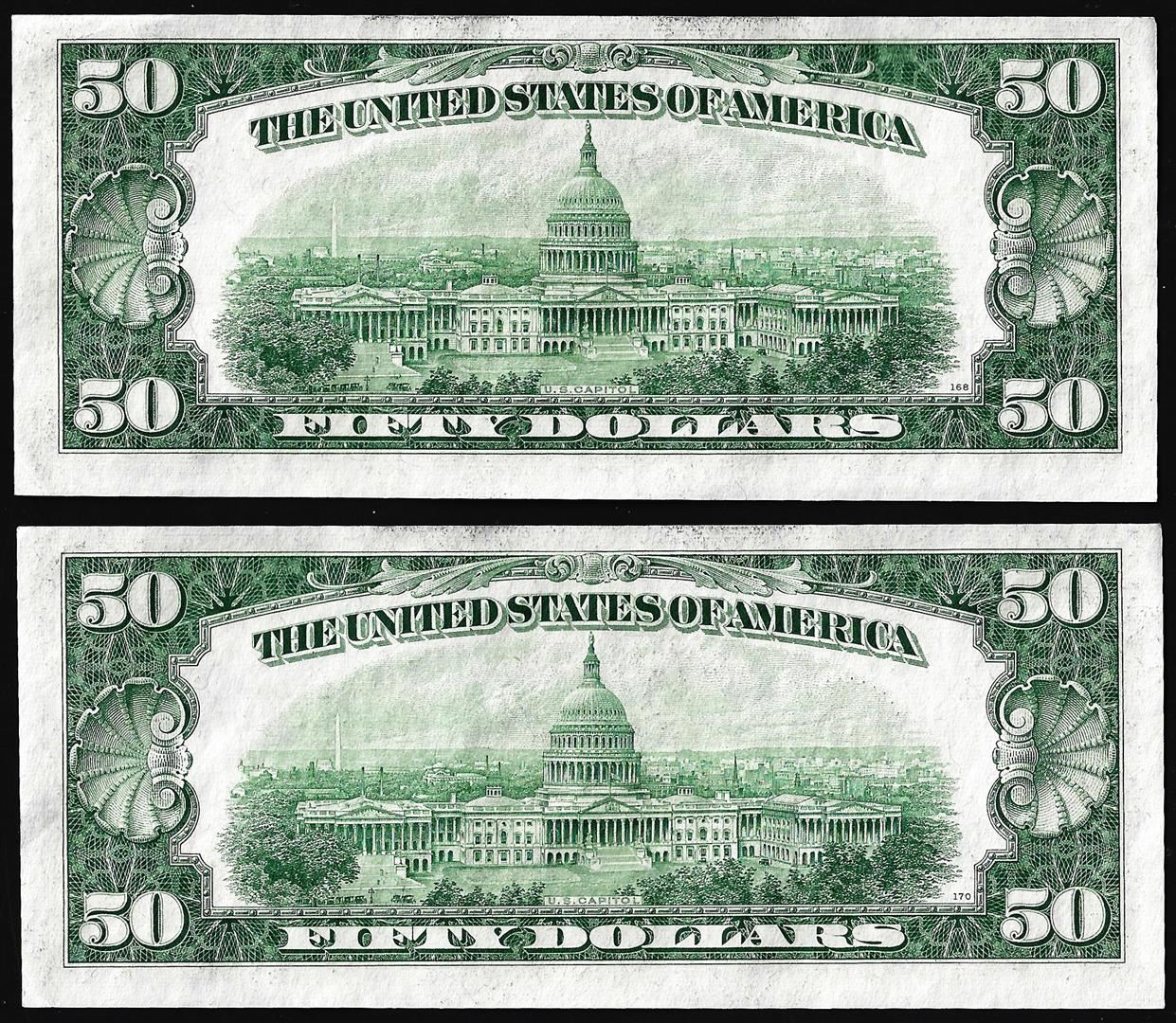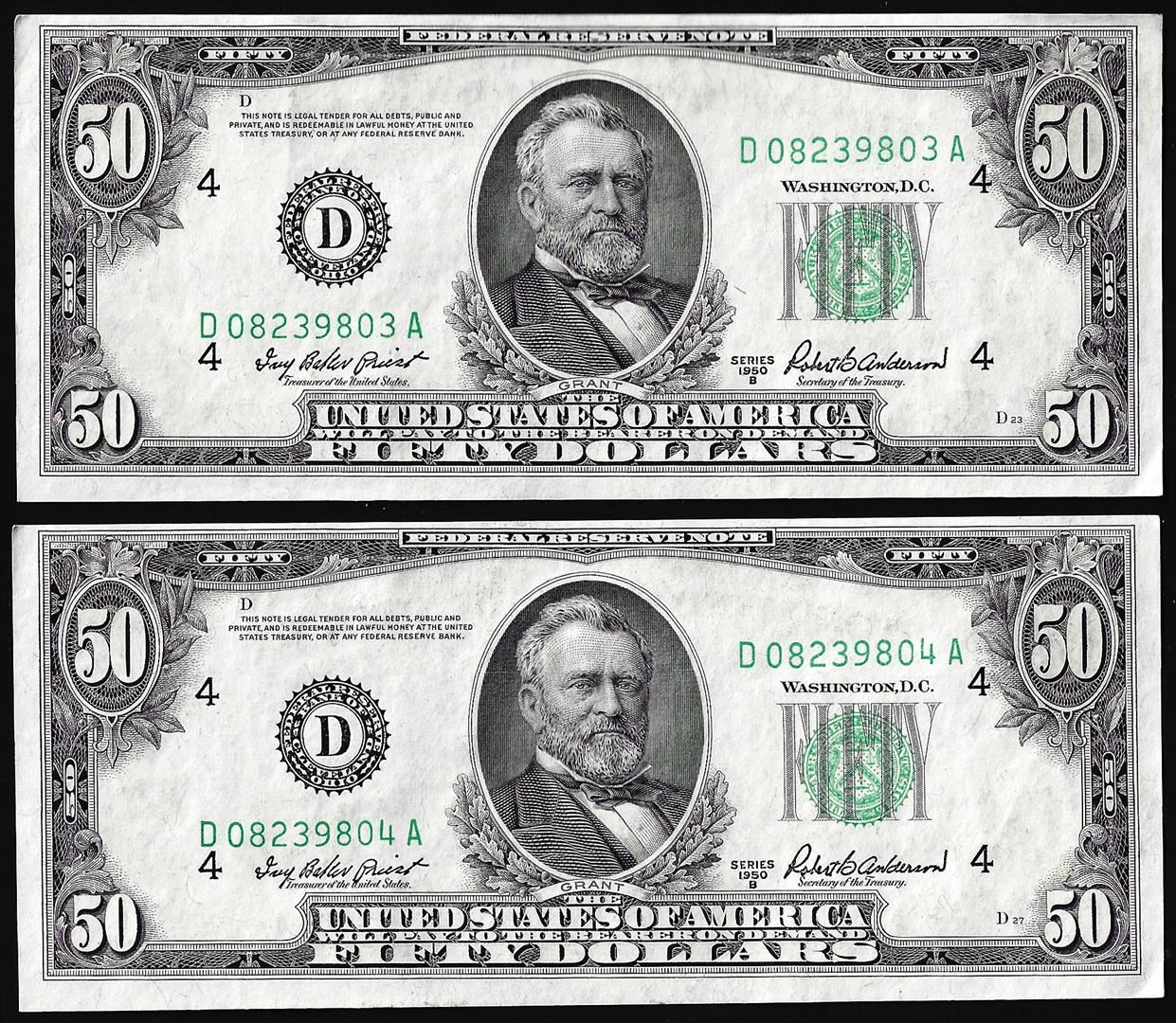 One Lot of (2) Consecutive 1950B $50 Federal Reserve Notes Cleveland.