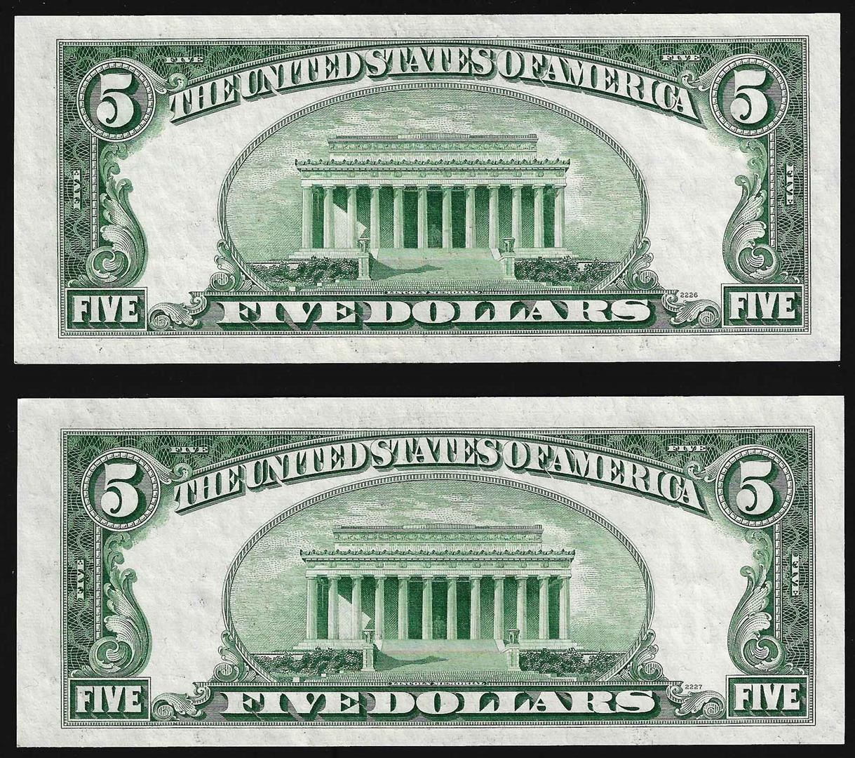 One Lot of (2) Consecutive 1953 $5 Silver Certificate Notes Choice Uncirculated.