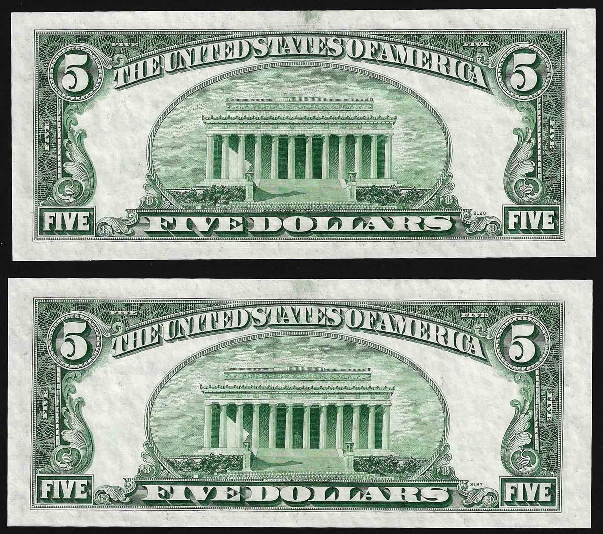 Lot of (2) Consecutive 1953 $5 Silver Certificate Notes Choice Uncirculated