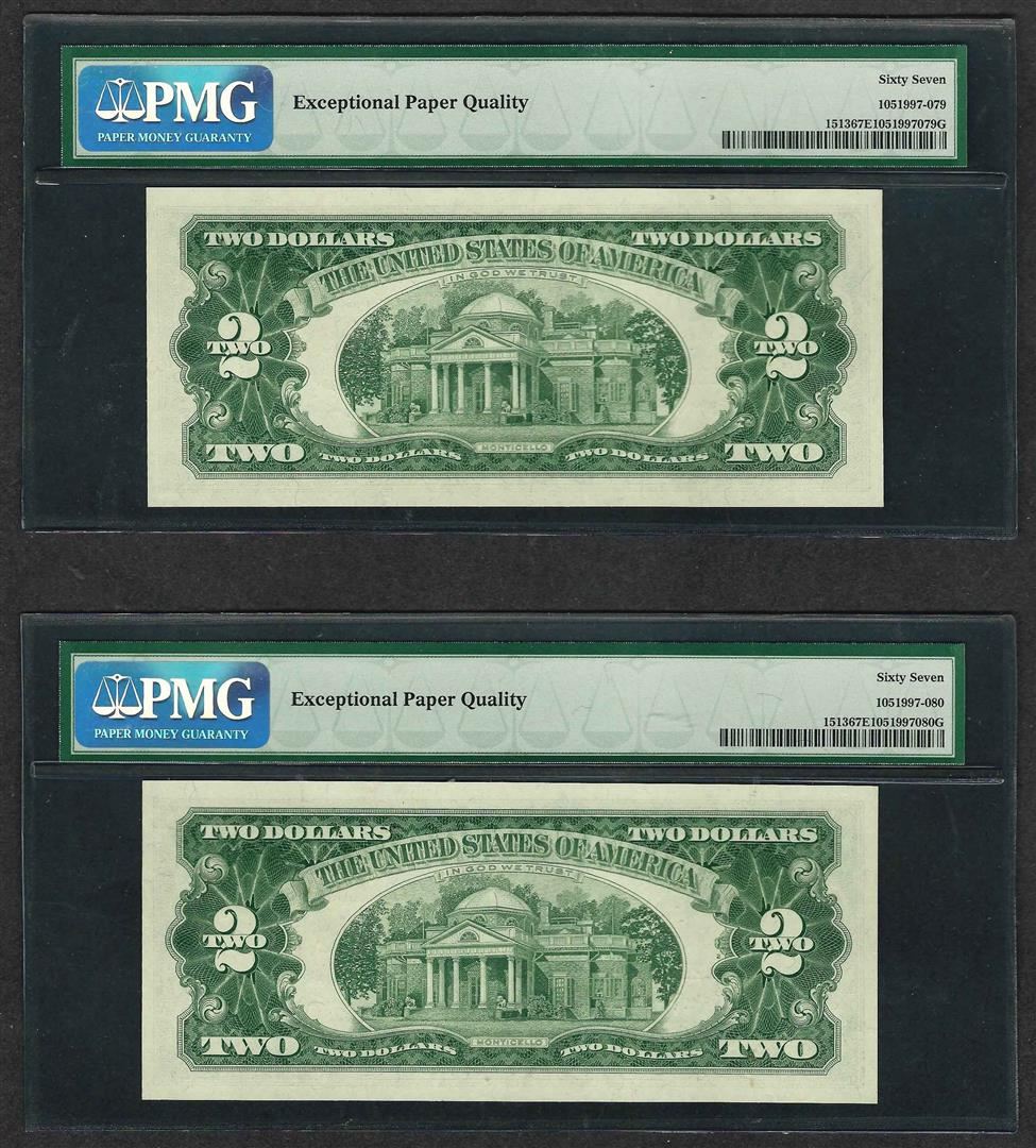 Lot of (2) Consecutive 1963 $2 Legal Tender Notes PMG Superb Gem Uncirculated 67