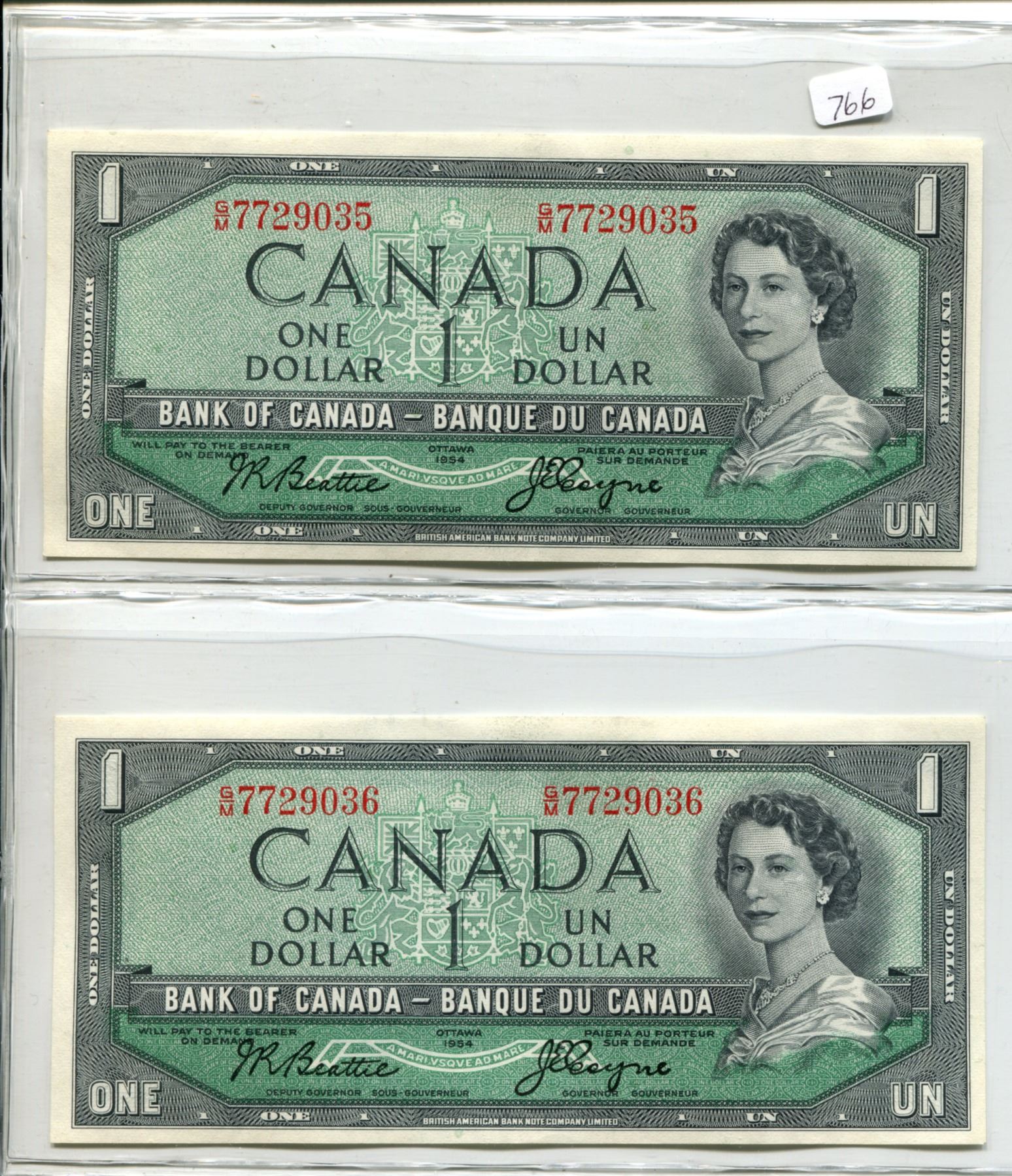Lot of 2 Consecutive Serial Number 1954 Modified Portrait $1 Notes. Beattie-Coyne signatures. G/M Prefix. Serial Numbers 7729035 & 7729036.