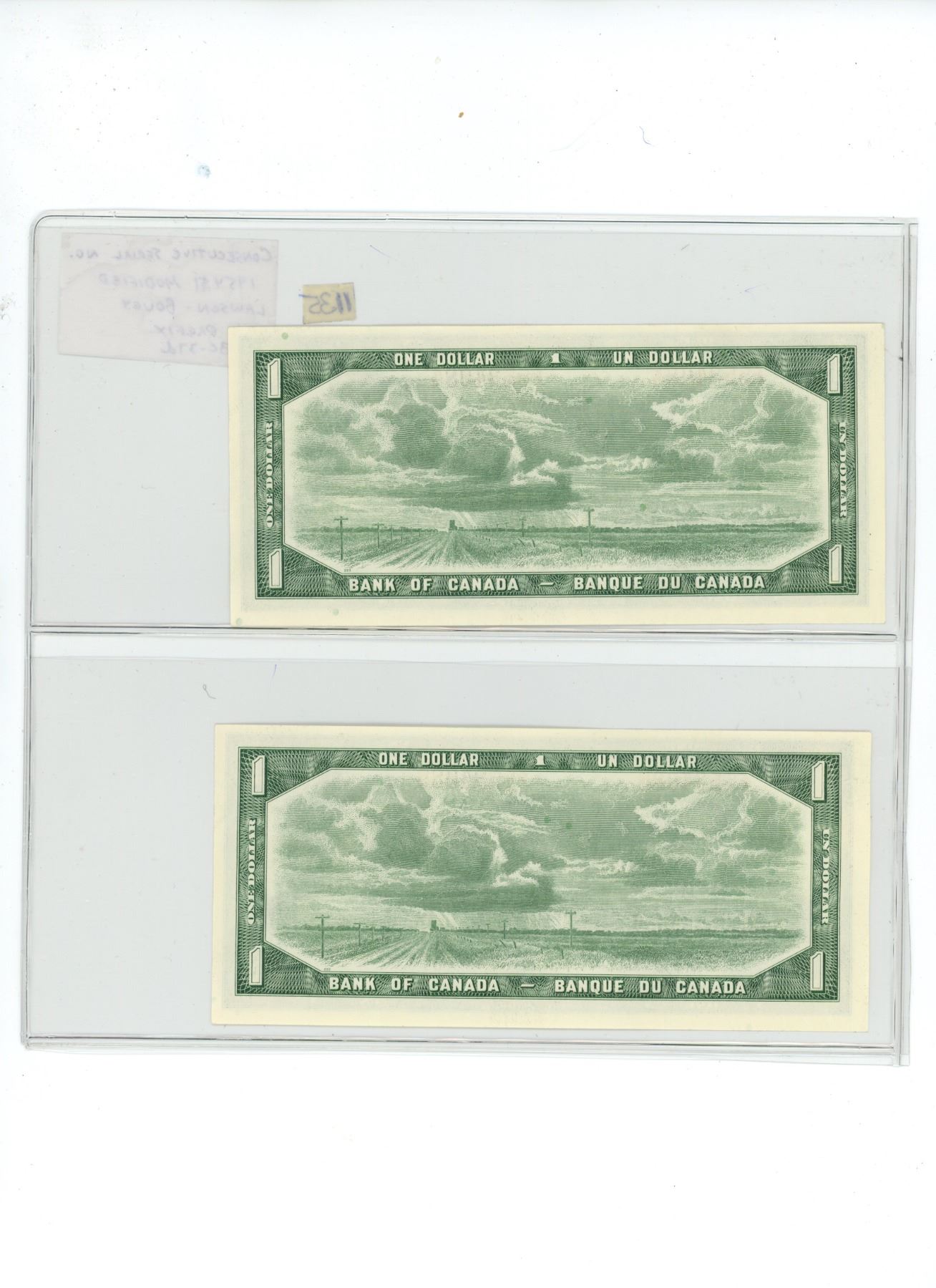 Lot of 2 Consecutive Serial Number 1954 Modified Portrait $1 notes. Lawson-Bouey signatures. Z/F Prefix. Serial Numbers 5534084 & 5534085. BC-37d.