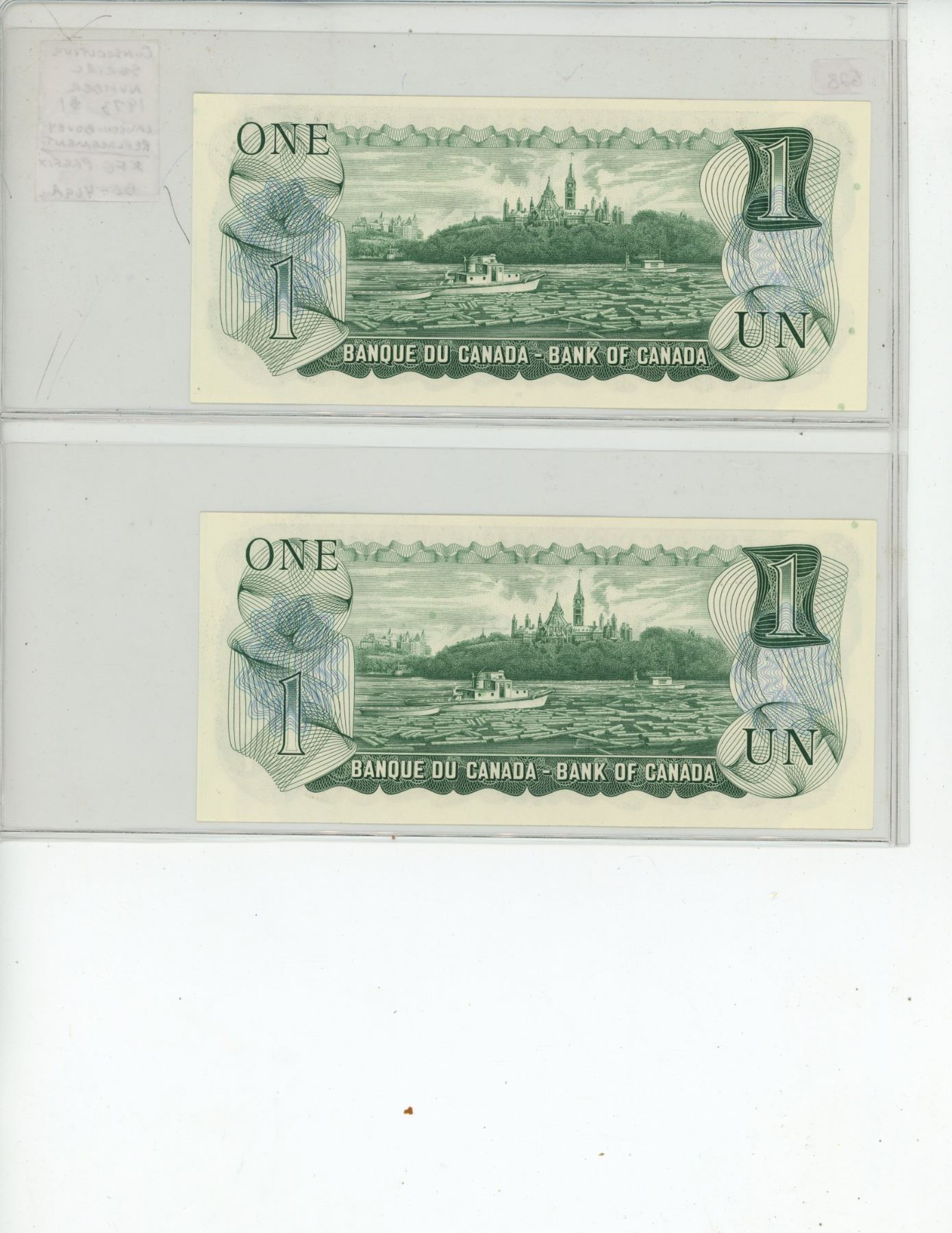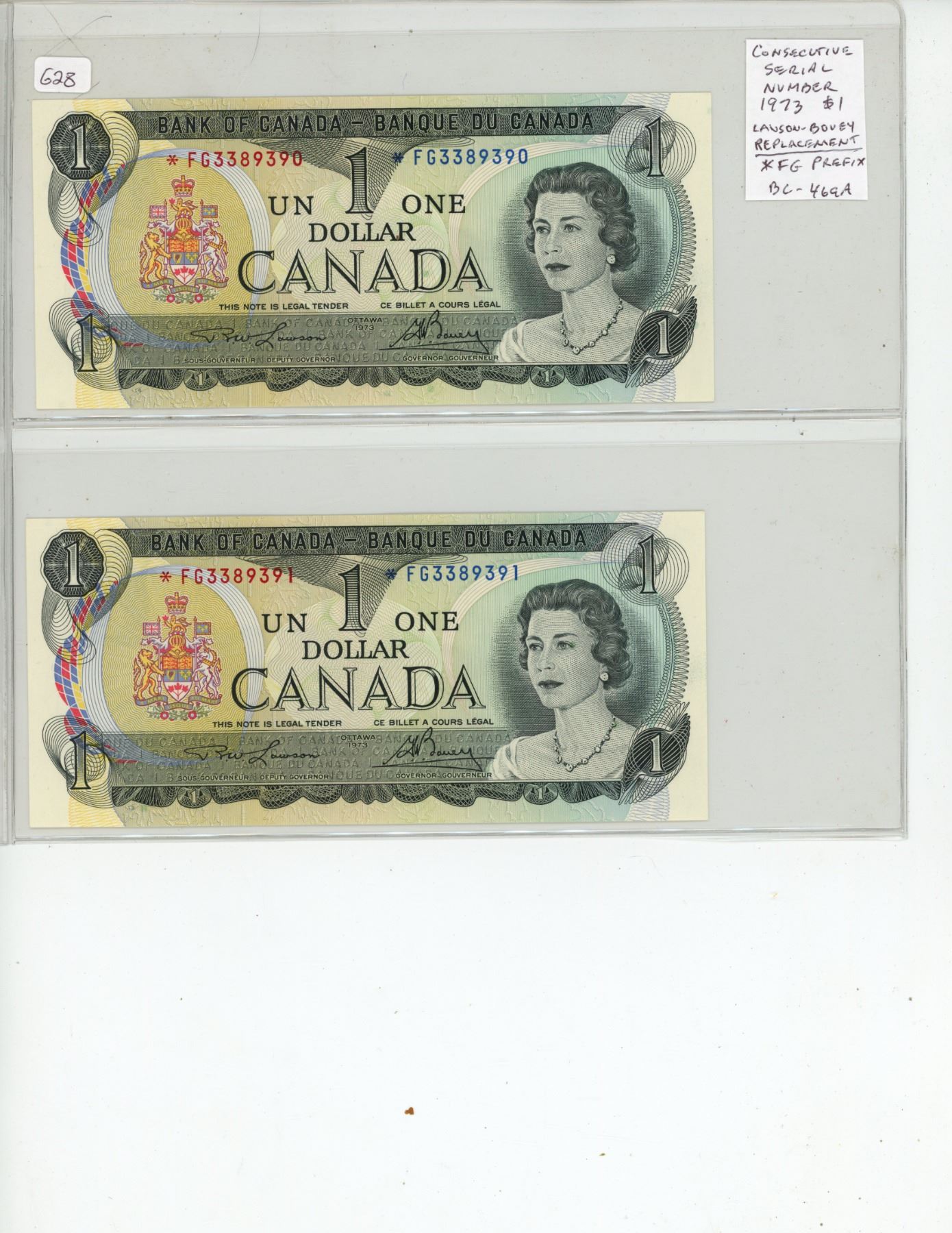 Lot of 2 Consecutive Serial Number 1973 $1 Replacement notes. Lawson-Bouey signatures. *FG Replacement Prefix. BC-46aA. Serial Numbers 3389390 & 3389391.