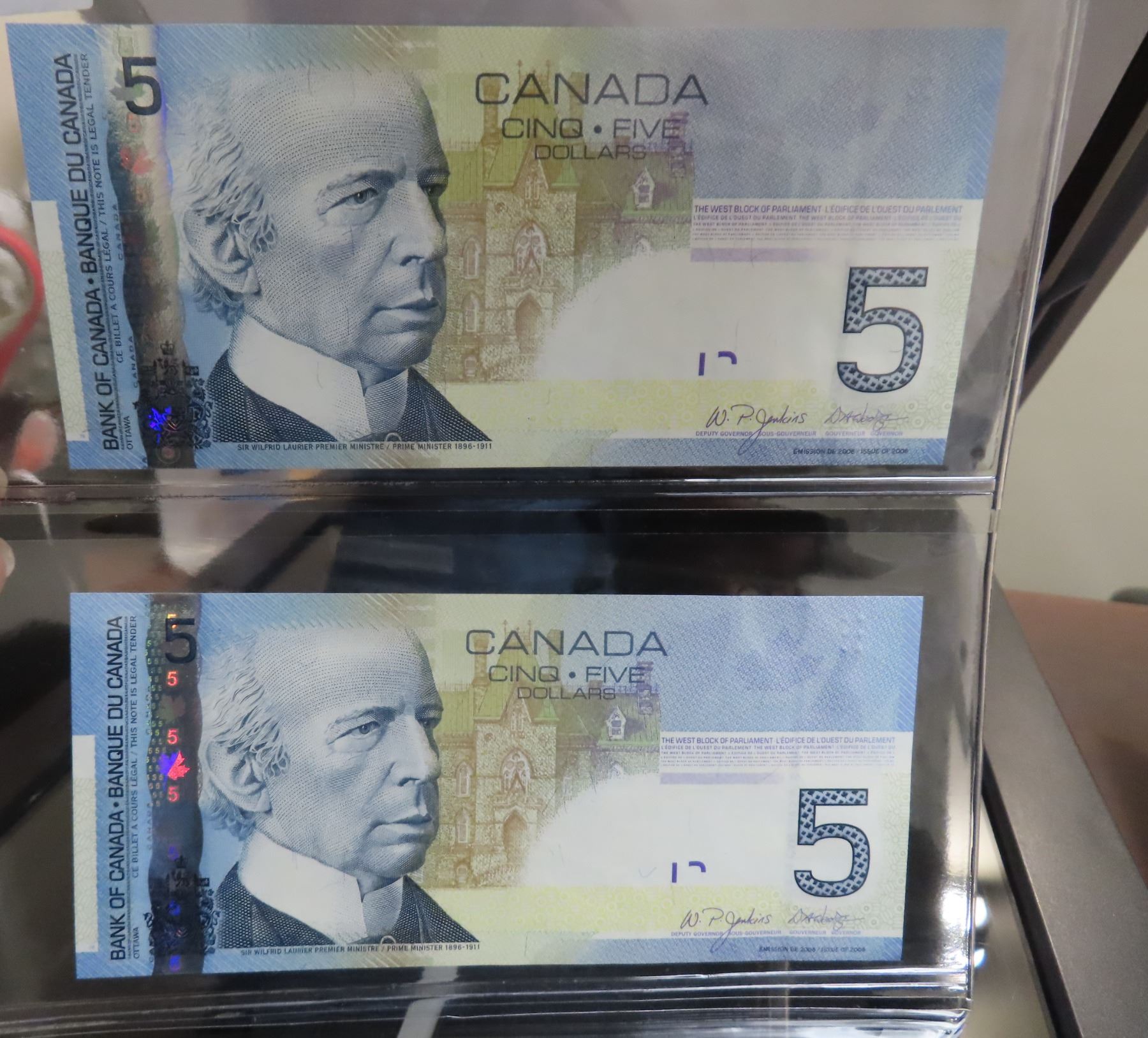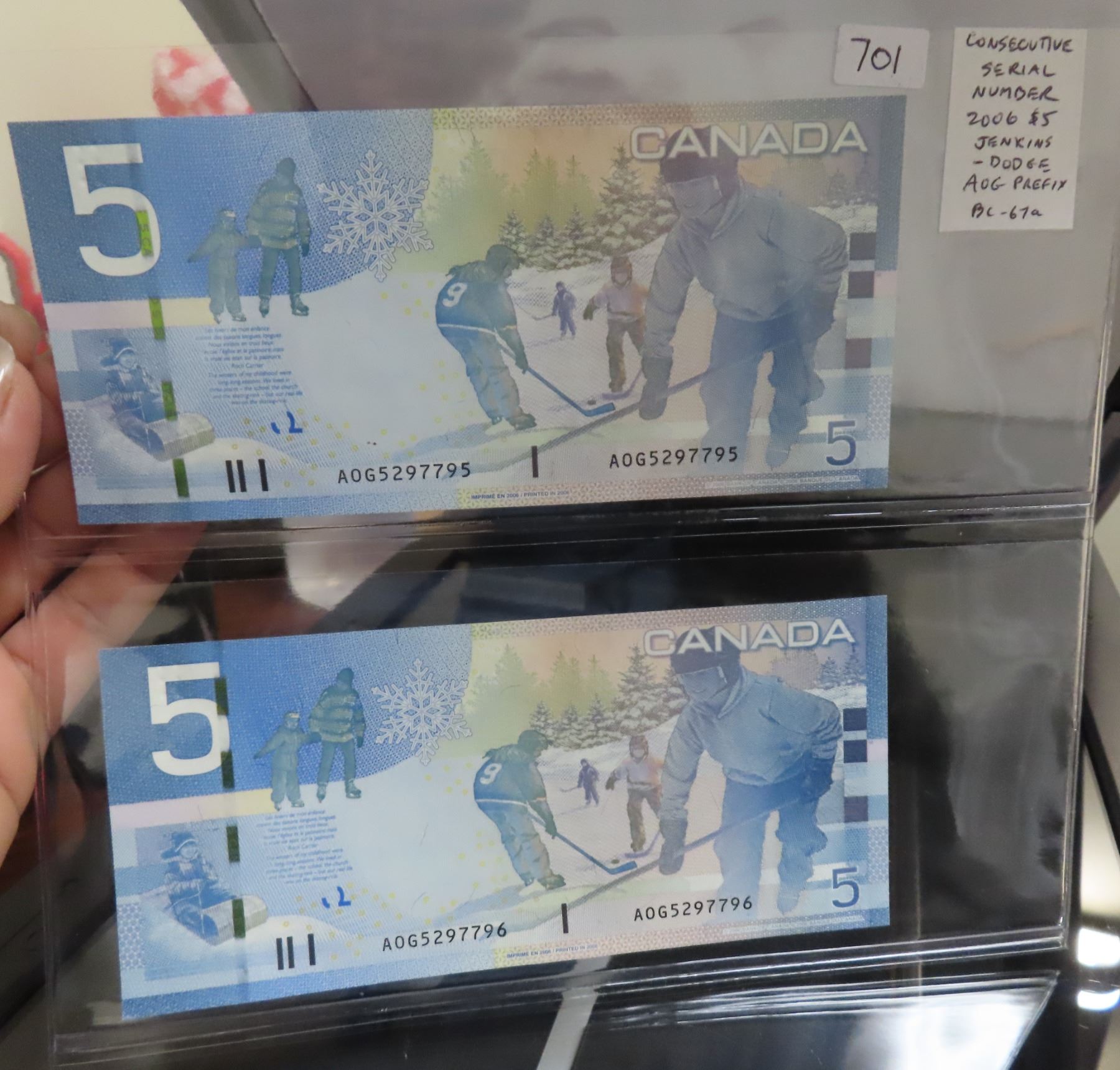 Lot of 2 Consecutive Serial Number 2006 $5 notes. Jenkins-Dodge signatures. AOG Prefix. BC-67a. Hockey. Serial Numbers 5297795 & 5297796.