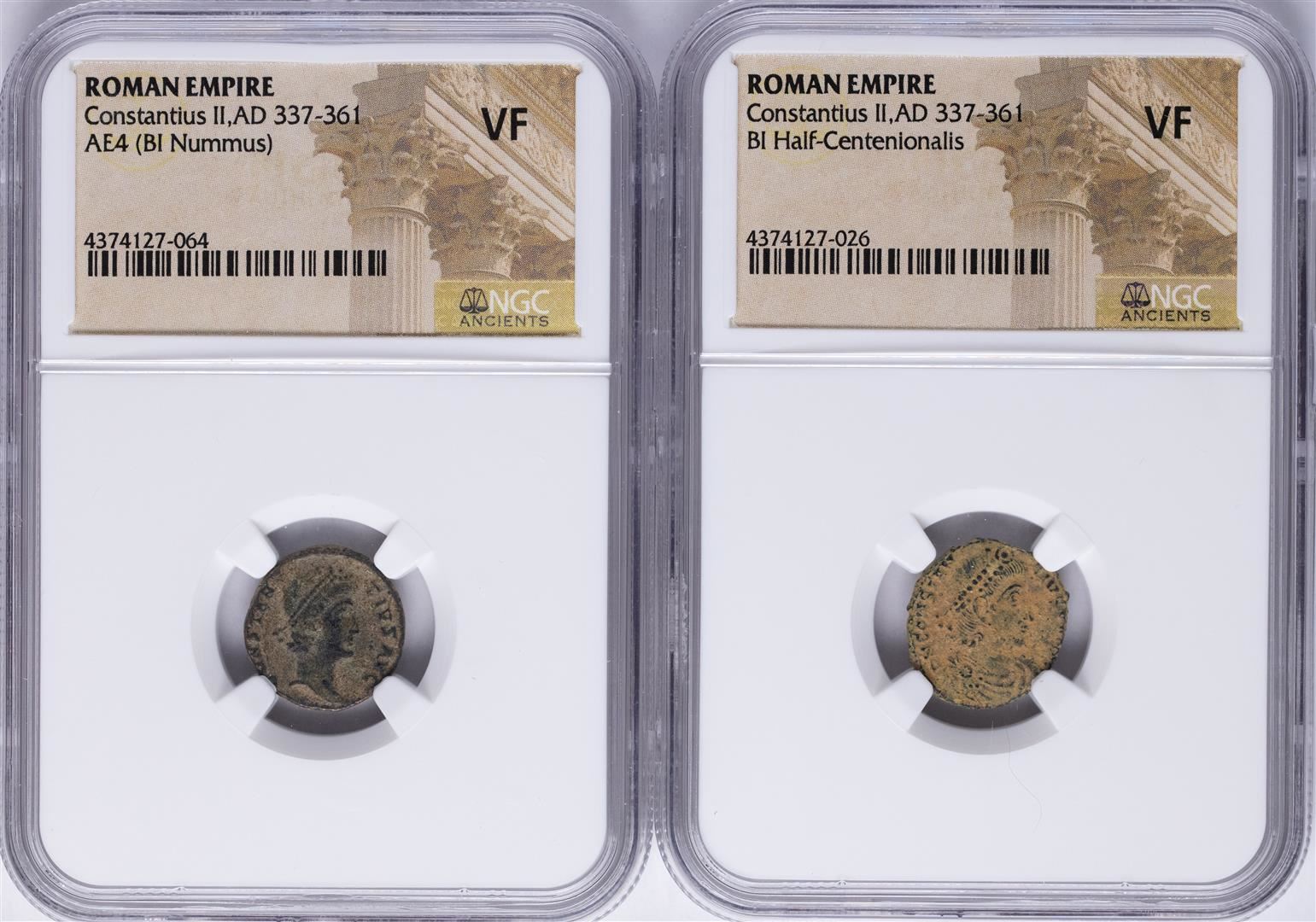 Lot of (2) Constantius II A.D 337-361 Ancient Roman Empire Coins NGC VF